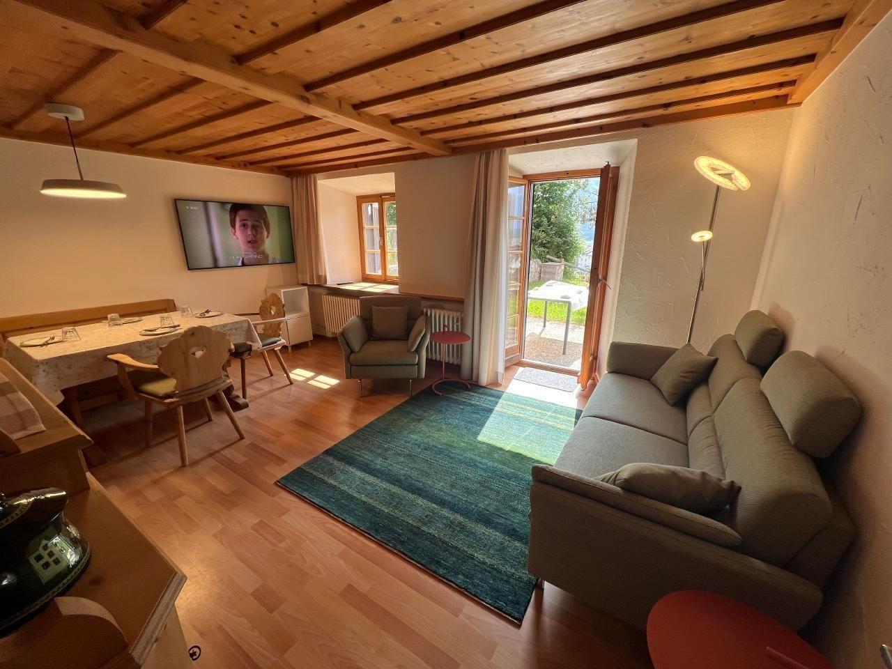 Die gemütlich eingerichtete 3.5-Zimmer-Wohnung (63m²) befindet sich im Souterrain der Liegenschaft Chesa Fischer. Die Wohnung bietet Platz für 4 Personen. Benutzung des reservierten Parkplatzes / Skiraum / Velo-Abstellplatz sowie WLAN-Zugang gehören zur Wohnungsmiete.