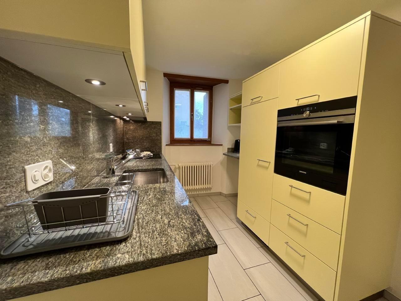 Ausstattung der einzelnen Räumlichkeiten: Küche: Separate Küche, Backofen, Kühlschrank, Nespresso-Kaffeemaschine, Wasserkocher, Fondue, Raclette, Toaster. Wohnzimmer: Couckecke, Esstisch, Ausgang zur Terrasse, TV. Schlafzimmer: Die Schlafzimmer sind mit je 1 Bett 180x200 ausgestattet, Matratzen 2x 90x200. Badezimmer: Badewanne, Ablage für Frotéewäsche, Lavabo mit Spiegel, Haartrockner, separates WC. Eingangsbereich: Offene Garderobe, Schrank (Putzmittel, Bügeleisen, Bügelbrett, Staubsauger). Heizung: Energiequelle Erdsonde.