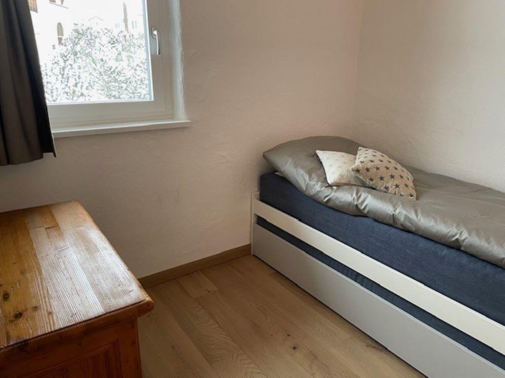 Die Wohnung verfügt über eine offene Küche, ein Wohnzimmer, zwei Schlafzimmer, ein Badezimmer, ein separates WC mit Dusche, sowie ein Skiraum und ein Ping-Pong-Raum. Dazu steht ein Einstellplatz in der Tiefgarage der Liegenschaft zur Verfügung. Der private Sitzplatz im Erdgeschoss und Balkon im ersten Stock laden zu einer wunderschönen Aussicht auf den Hausberg von Samedan, den Muottas Muragl, sowie auf die Bernina-Gruppe ein. Die allgemeine Waschküche steht zur Mitbenützung. In nur wenigen Gehminuten erreicht man die Bushaltestellen, welche einen direkten Anschluss an die Skigebiete bietet. Die Talabfahrt des beliebten Skigebiets *Marguns* endet unmittelbar neben der Liegenschaft. Diverse Einkaufsmöglichkeiten sind in 5 Minuten zu Fuss erreichbar.