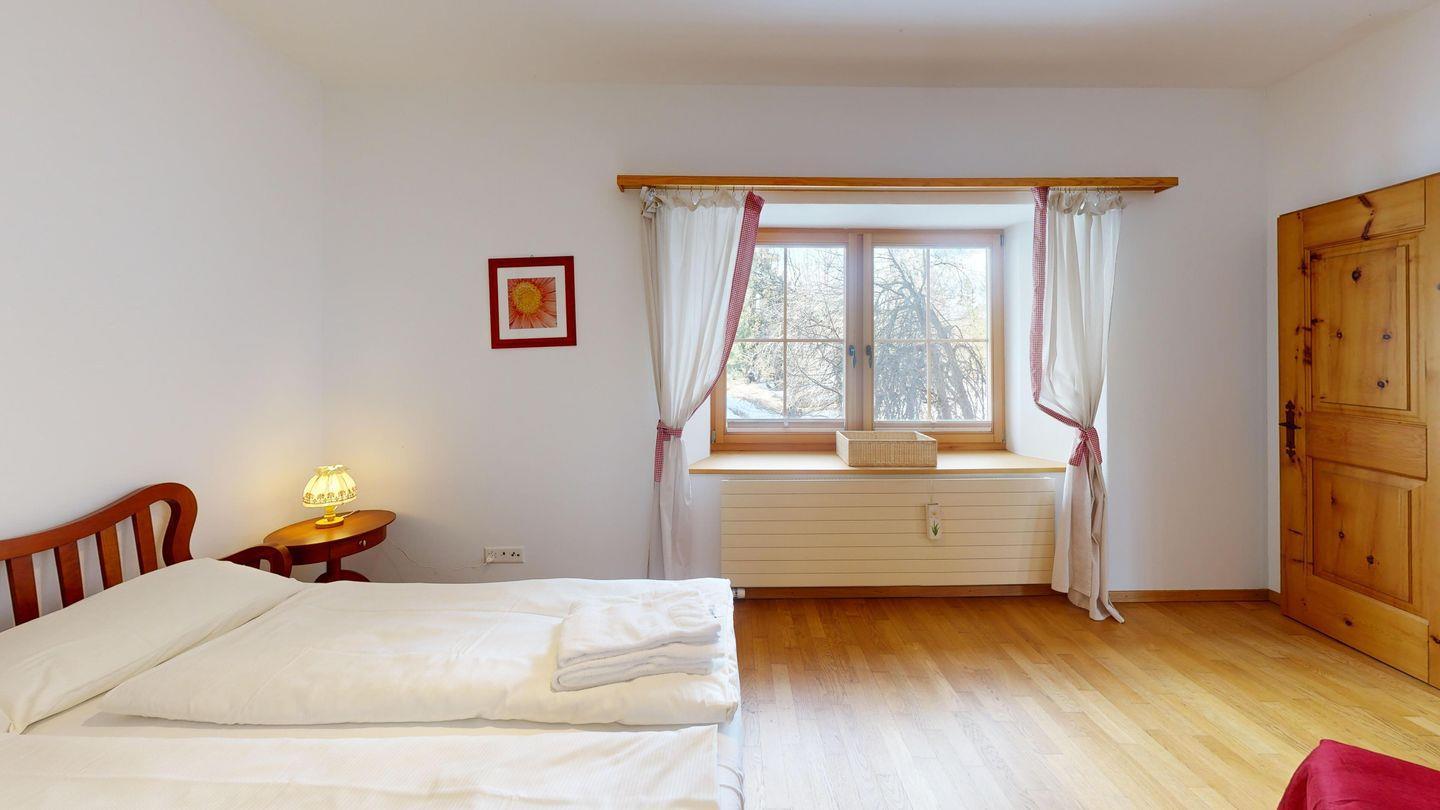 Gemütliche Ferienwohnung im Herzen von Samedan mit grosser Terrasse und Gartenmöbeln. Zwei Schlafzimmer, eines mit zusätzlichem Etagenbett für Kinder. Zwei Badezimmer (Dusche & Badewanne), gut ausgestattete Küche, einladendes Entree und ein helles Wohnzimmer mit Sofa und TV.
