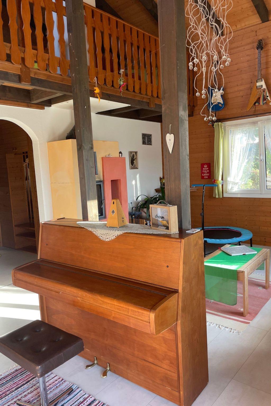 Im Innenbereich wartet das Chalet mit einer wohlüberlegten Ausstattung auf Ihren Aufenthalt komfortabel zu gestalten. Ein gemütliches Wohnambiente mit einer Lounge und einer Essecke erlaubt es den Gästen, während sie auf die sanft geschwungenen grünen oder weißen Hügel blicken, zur Ruhe zu kommen. Zusätzlich versorgt Sie das Bergquellwasser direkt aus dem Hahn mit bester Trinkwasserqualität. Klavier, E-Gitarren sowie eine vielfältige Literatursammlung in deutscher, englischer und französischer Sprache laden zur Inspiration ein. Kostenloses Internet fürs home-office. Ideal auch für kreative Köpfe, Autor*innen, Musikeri*innen, Composer.