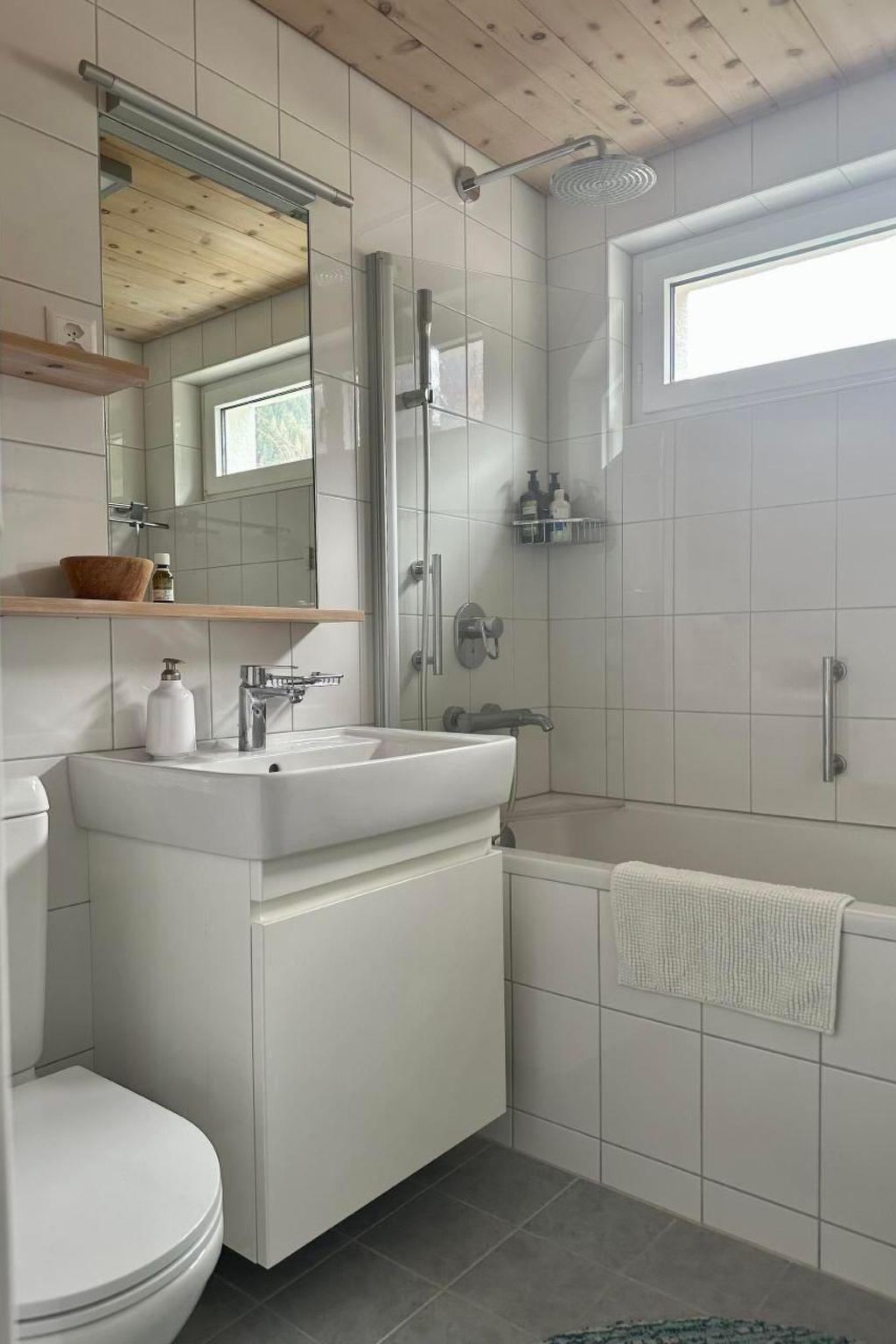 Moderne Bäder mit höchstem Standard, wie z.b. eine Regendusche und Wanne mit Bergblick. Balkon, zwei Terrassen, Garten rundum, Grills, Skibus 50 Meter. Das untere Bad wurde 2025 komplett neu umgebaut und verfügt nun über eine bodentiefe Dusche, eine Spa Whirlwanne und eine separate Gästetoilette, alle mit hochwertigen Granit, Stein und Arvenelementen.