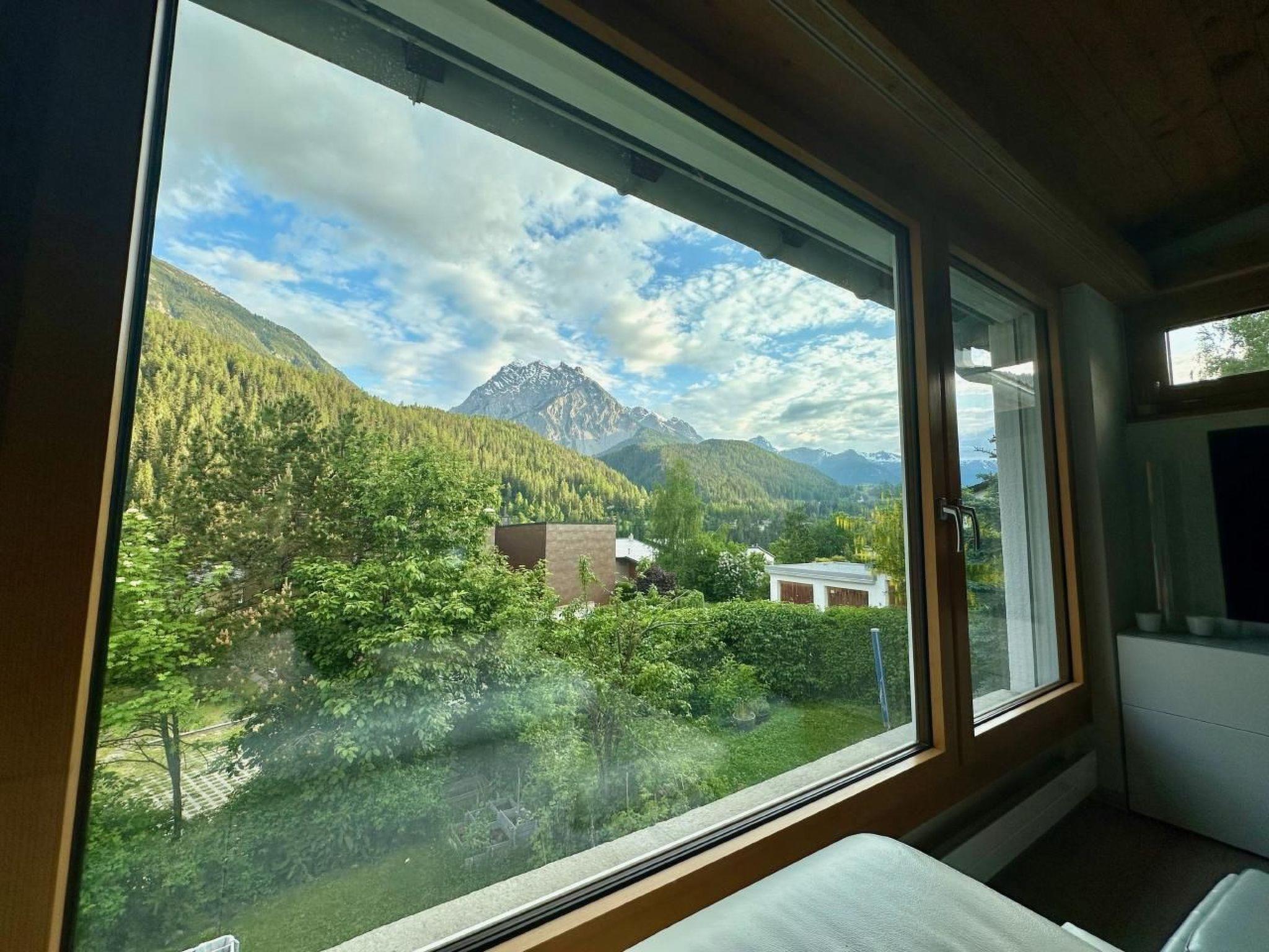 Von unserem zu Hause haben Sie nicht nur einen uneingeschränkte Blick auf die Engadiner Dolomiten, sondern sehen aus dem Panoramafenster sogar bis zum Schloss Tarasp.
