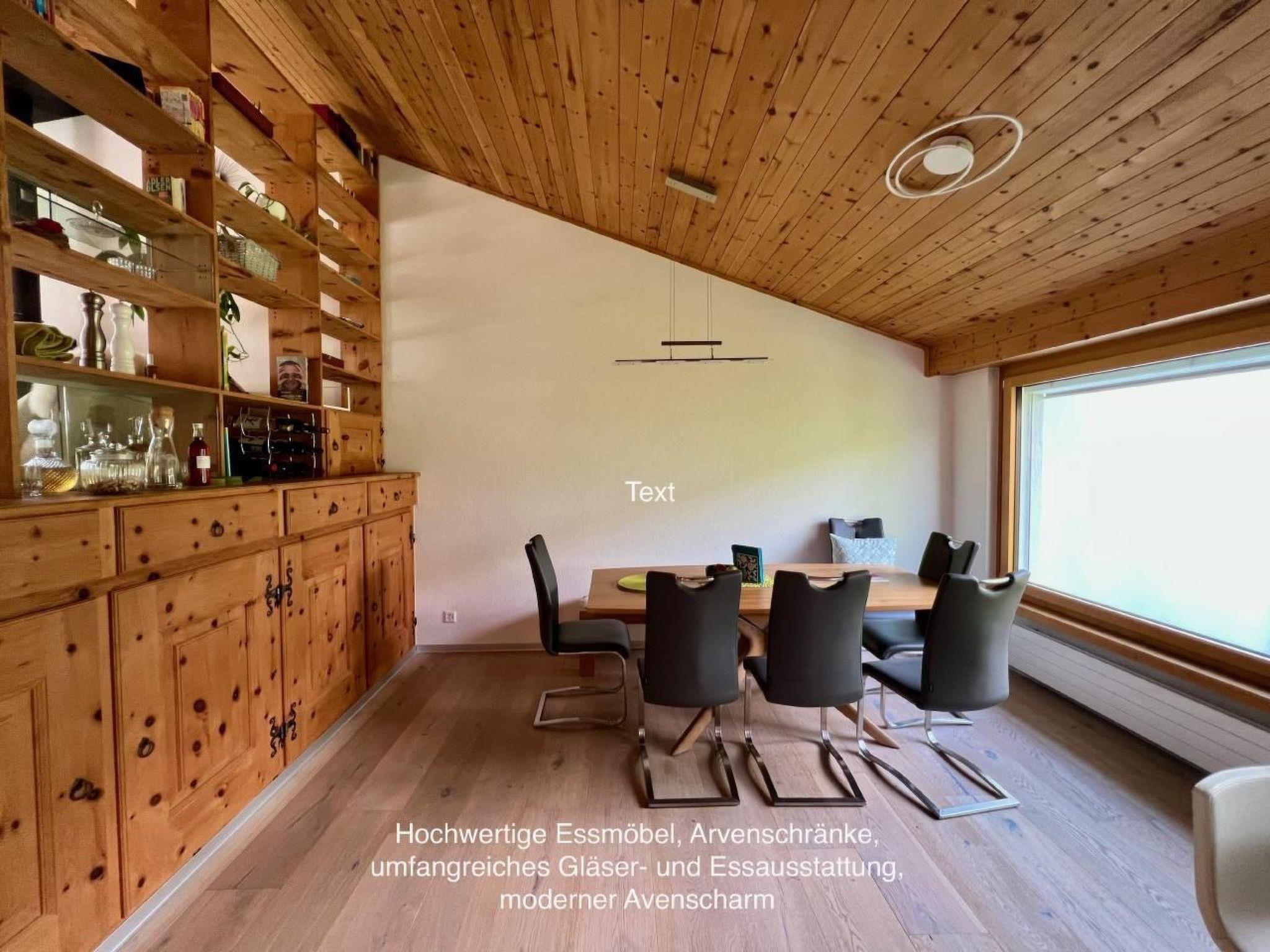 Die Wohnungen verfügen über schnelles Internet, WLAN , 2 TVs, einen Massagesessel, zwei grosszügige offene und vollausgestattete Küchen, zwei Schlafzimmer mit neuen Polsterbetten mit neuen sehr hochwertigen Taschenfederkernmatratzen, Arvenmöbeln und Schränken, hochwertige und moderne Möbel in einem spannenden Mix mit Arvenelementen. Unser Haus hat einen Süd-Balkon mit genialem Bergweitblick, 2 Terrassen mit Bergblick, einen eigenen Garten mit Kräutern und leckeren Beeren im Sommer. Gartenspa mit Sauna und Whirlpool.