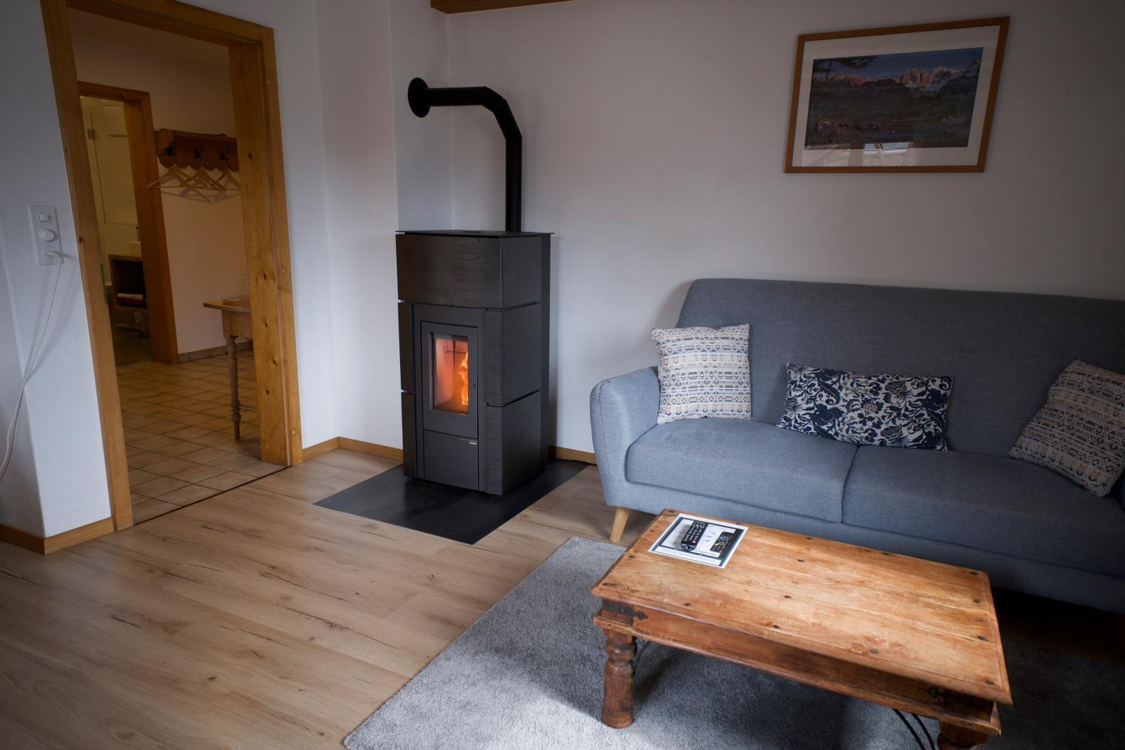 2 Schlafräume, Babybett, Babybett im Zimmer, Backofen, Fondue-Set, Garten, Geschirrspüler, Grillmöglichkeit, Haustiere nicht erlaubt, Internetverbindung, Kachelofen, Kaffeemaschine, Kinderbett, Küche, Küchenwäsche, Kühlschrank, Nichtraucherzimmer-/wohnung, Parking, Raclette-Set, Radio, Terrasse, Tisch- und Küchenwäsche, Töpfe Pfannen Geschirr, TV, Wäschetrockner, Wäschetrockner im Haus, Waschmaschine, Waschmaschine im Haus, Wasserkocher, WiFi