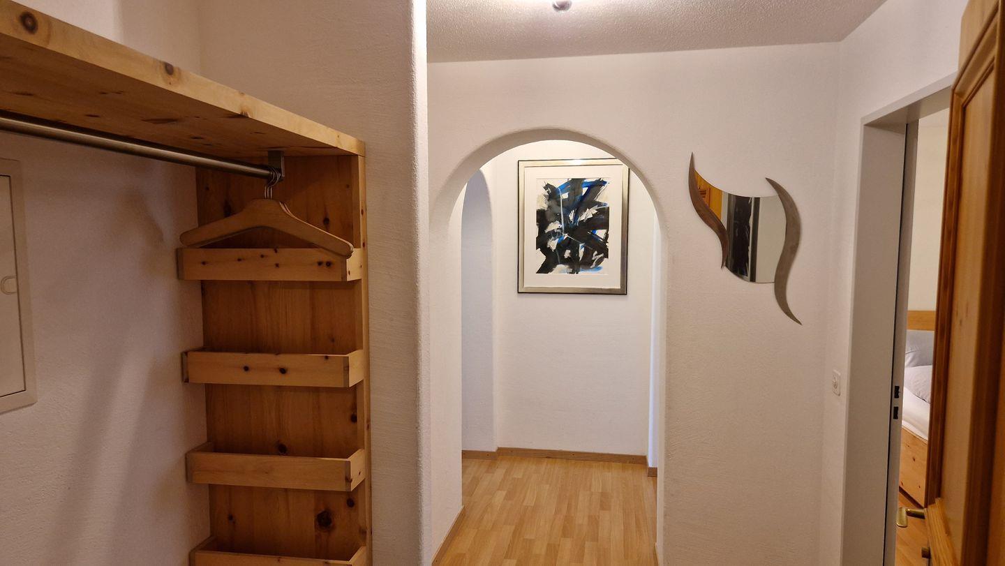 2-Zimmerwohnung im Haus Leivra, Parterre, 75 m2. Die Wohnung ist mit Arvenmöbeln ausgestattet und verfügt über ein grosszügiges Wohn-/Esszimmer mit Fernseher, ein Schlafzimmer mit Doppelbett, ein Bad/WC mit Dusche und eine grosse Küche mit Backofen, Geschirrspüler, Kühlschrank und kleinem Gefrierschrank sowie Nesspresso-Kapselmaschine. Die gedeckte Terrasse ist nach Süden ausgerichtet und bietet eine schöne Aussicht in die Berge. Nichtraucherwohnung.