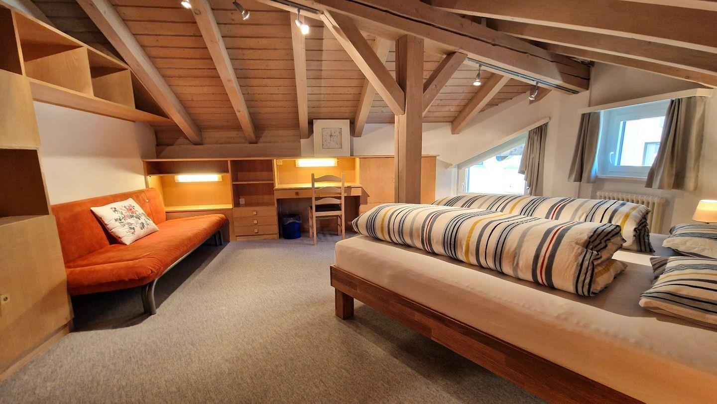 5 1/2-Zimmer-Dachwohnung im Haus Leivra, 4. Stock, 150 m2. Die helle und gemütliche Wohnung ist zweistöckig angelegt. Im unteren Stock befindet sich die Küche mit Geschirrspüler, der Essbereich mit Balkon sowie ein Badezimmer mit Dusche; im oberen Stock sind die drei Schlafzimmer, das Wohnzimmer mit Fernseher und ein Badezimmer mit Badewanne. Der nach Süden ausgerichtete Balkon offenbart eine prächtigen Blick auf das Corvatschgebiet und den Silvaplanersee. Nichtraucherwohnung.