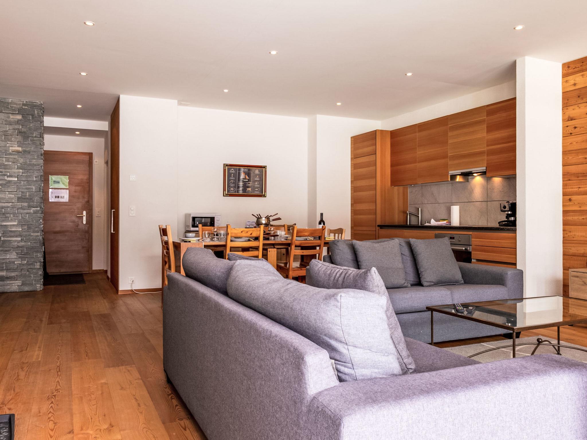 "Rosablanche D 204B", 3-Zimmer-Wohnung 100 m2, im erhöhten Erdgeschoss, Südlage. Objekt geeignet für 2 Erwachsene + 3 Kinder. Geräumig, modern und geschmackvoll eingerichtet: Wohn-/Esszimmer mit TV. Ausgang zur Terrasse, Richtung Süden. 1 Zimmer mit 1 franz. Bett (160 cm, Länge 200 cm). Ausgang zur Terrasse. 1 Zimmer mit 1 x 1 Etagenbetten (90 cm, Länge 190 cm), 1 franz. Bett (140 cm, Länge 190 cm). Offene Küche (Backofen, Geschirrspüler, 4 Glaskeramikplatten, Toaster, Wasserkocher, Mikrowelle, Tiefkühler, Racletteofen, Fondue Set (Käse)). Bad/WC, Dusche/WC. Grosse Terrasse, Südlage. Schöne, auf die Berge. Zur Verfügung: Haartrockner. Internet (WLAN). Garage Nr. 5. Bitte beachten: Nichtraucher-Unterkunft.