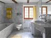 Das Badezimmer mit Badewanne, Duschvorhang, WC und Lavabo befindet sich auf der dritten Etage. Hier ist auch eine kleine Waschmaschine untergebracht. Das Separat-WC liegt zwischen der ersten und zweiten Etage.