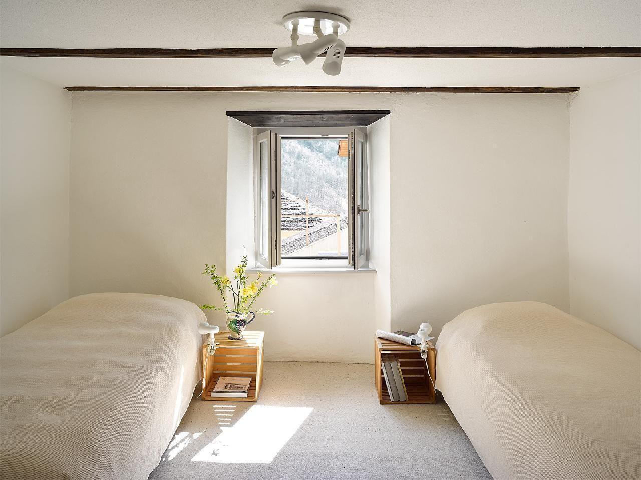 Die Etagen sind über eine steinerne Treppe miteinander verbunden. Bei der Renovation wurde auf eine auf Haus und Gegend abgestimmte Wahl der Materialien geachtet. So wurde für die Küche Granit aus dem Calancatal und für das Badezimmer Marmor aus dem Maggiatal verwendet.