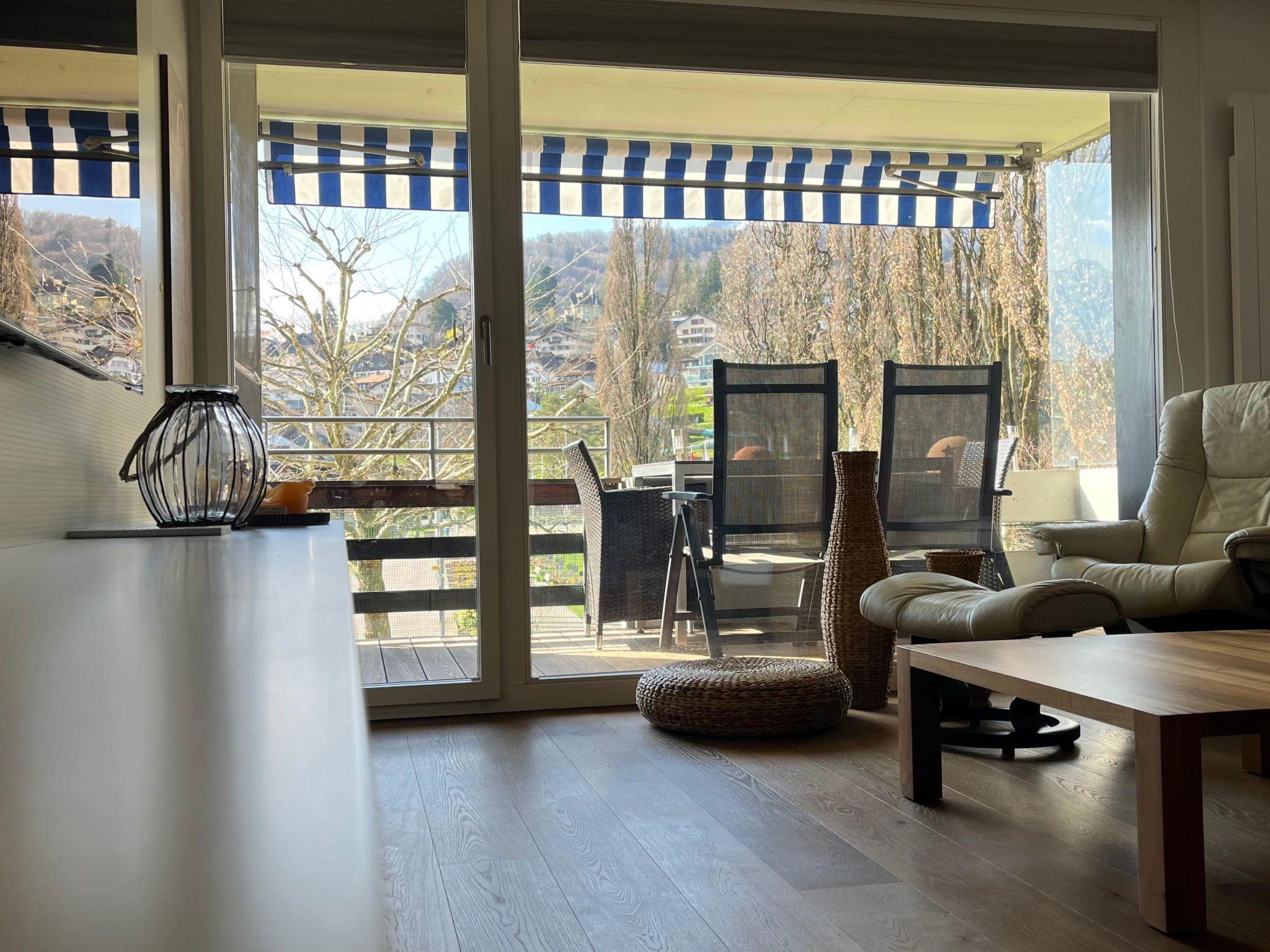 85 m2. Weitere Angaben des Anbieters: Modern eingerichtete 3-Zimmerwohnung im Herzen der schönsten Bucht Europas. Das Bijou entzückt mit stimmigem Ambiente und atemberaubender Sicht auf den Thunersee und die umliegende Berglandschaft. Schlafzimmer mit Doppelbett und Dusche, Schlafzimmer mit Kajütenbett, Wohnküche, WC und Balkon befinden sich alle im 1. OG. Der Balkon und das nahe gelegene Freibad (während dem Sommer) laden zum Sonnenbaden ein.