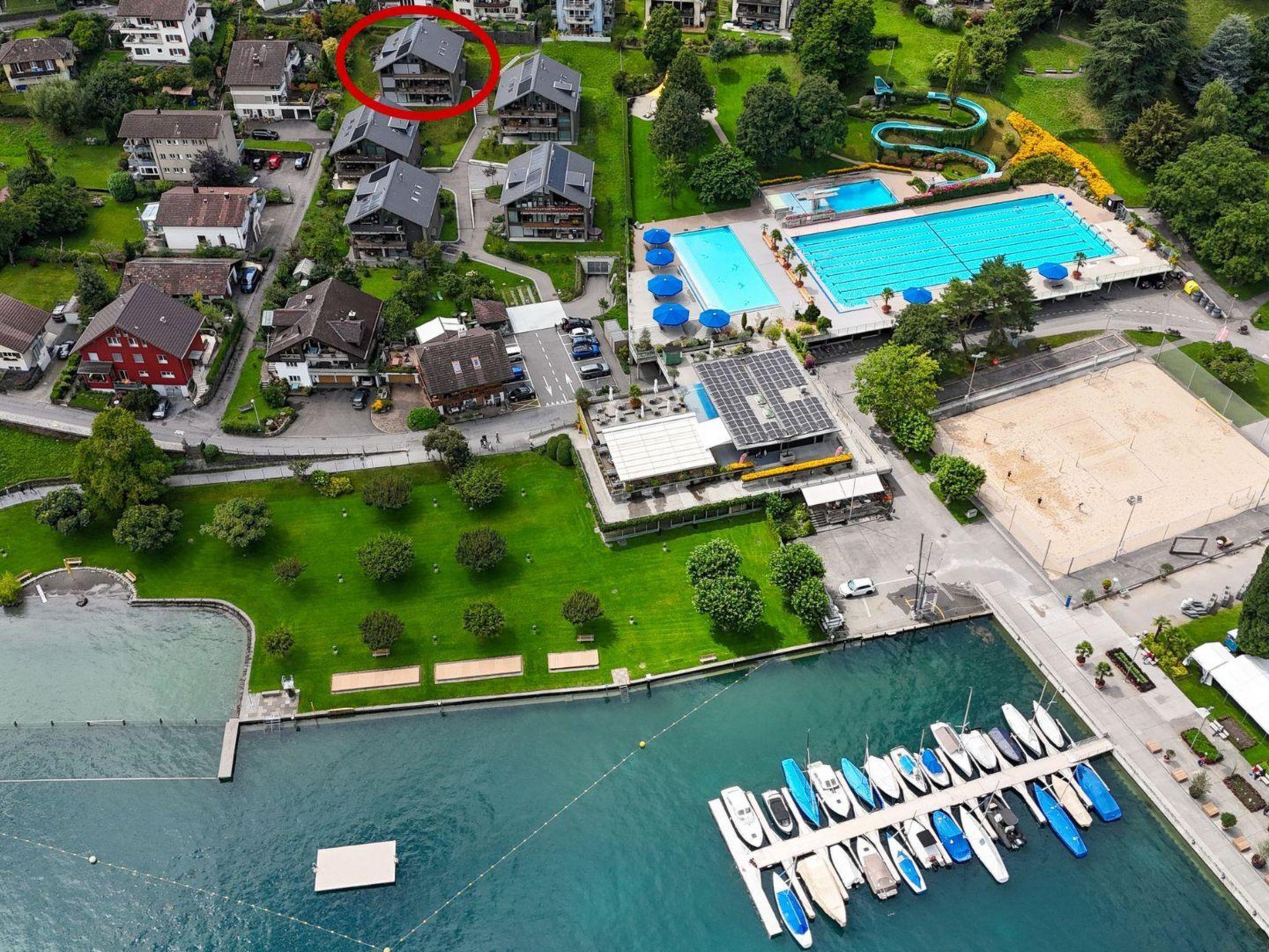 98 m2. Weitere Angaben des Anbieters: Grosszügige und topmoderne 3.5-Zimmerwohnung im Herzen der schönsten Bucht Europas. Das Bijou entzückt mit der atemberaubenden Sicht aufs Schloss Spiez und der idealen Lage zum lediglich 100 Meter entfernten Thunersee. Schlafzimmer mit Doppelbett und dazugehörigem Badezimmer, Schlafzimmer mit Doppelbett, separates Badezimmer, Wohnküche und Terrasse befinden sich alle im Erdgeschoss. Das nahe gelegene Freibad (während dem Sommer) lädt zum Sonnenbaden ein.