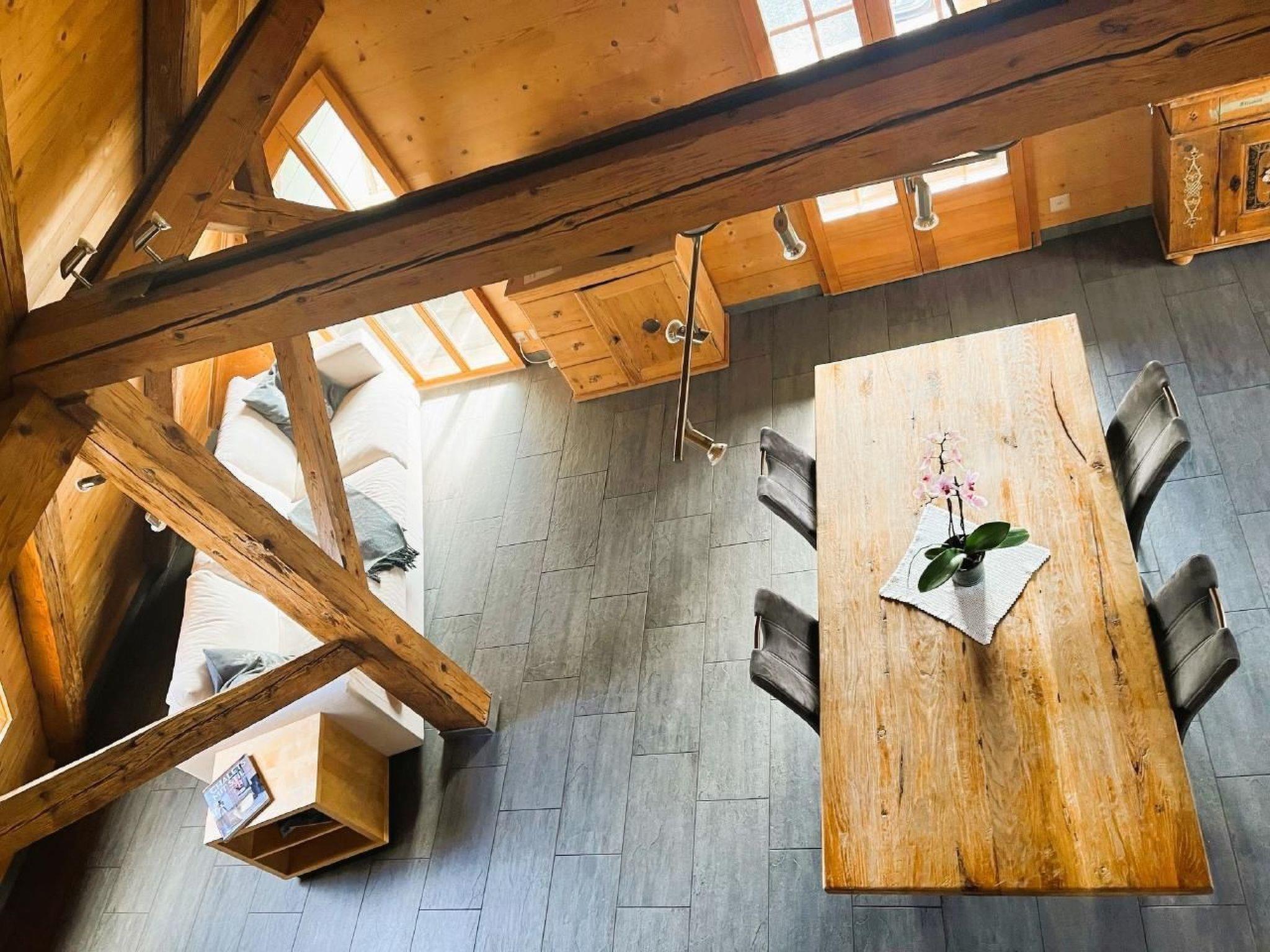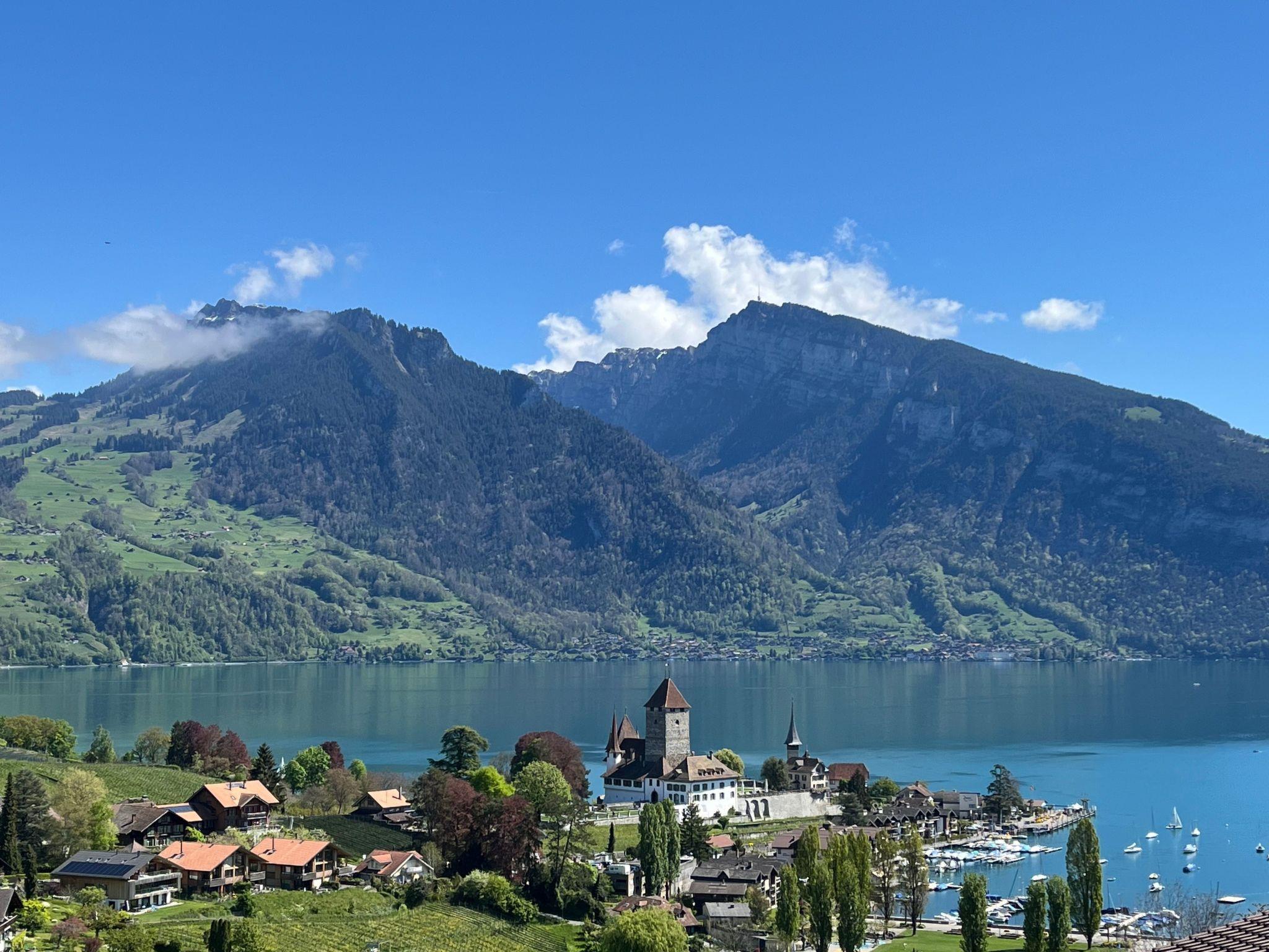 In unserem fast 250 jährigen sorgfältig renovierten Holzhaus. Vermieten wir eine rustikale und äusserst komfortable 3-Zimmer-Dachstockwohnung mit Galerie. Grosszügige und komplett eingerichtete Küche mit Geschirrspülmaschine, NESPRESSO Kaffeemaschine, Mikrowelle, Raclette Ofen, Fondue Caquelon, Toaster, Wasserkocher und Waschmaschine. Äusserst komfortabler Ess- und Wohnraum mit zwei Sofas, grossem Esstisch mit Platz für bis zu 6 Personen, Flachbildschirm / Kabel Fernseher und Digital Radio. 1 Doppelschlafzimmer, Galerie mit 2 Betten, Badezimmer mit Badewanne / Dusche mit Glasduschwand und Toilette. Eine wunderschöne Rundsicht auf die Berge und den Thunersee haben sie von den beiden Balkone und aus den Fenstern. Ein richtiges Bijou zum Geniessen in ruhiger und ländlicher Gegend.