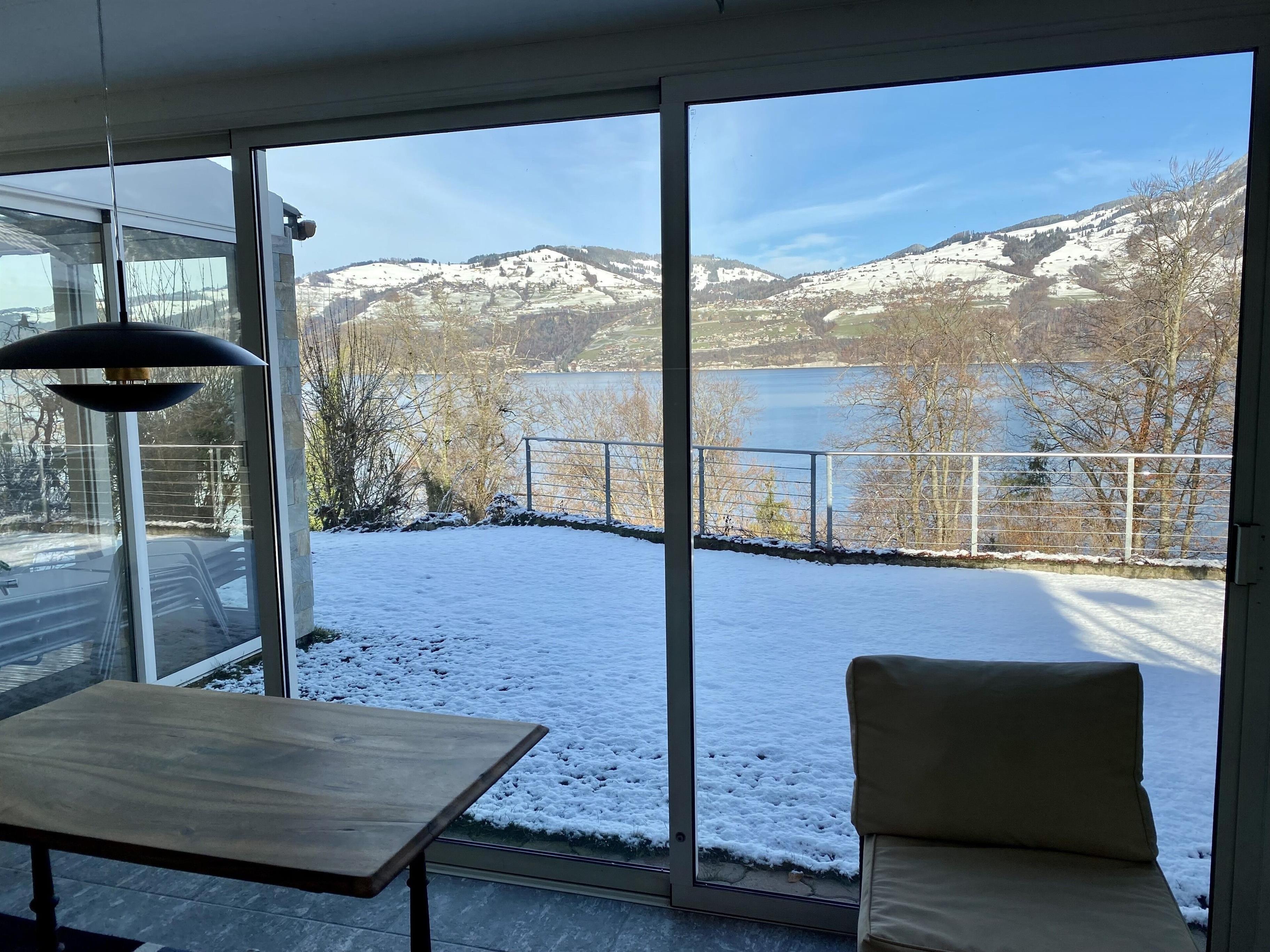 Renovierte 2 ½-Zimmerwohnung mit grossartigem Blick auf See und Berge. Die Wohnung befindet sich in einem Quartier ohne Durchgangsverkehr.