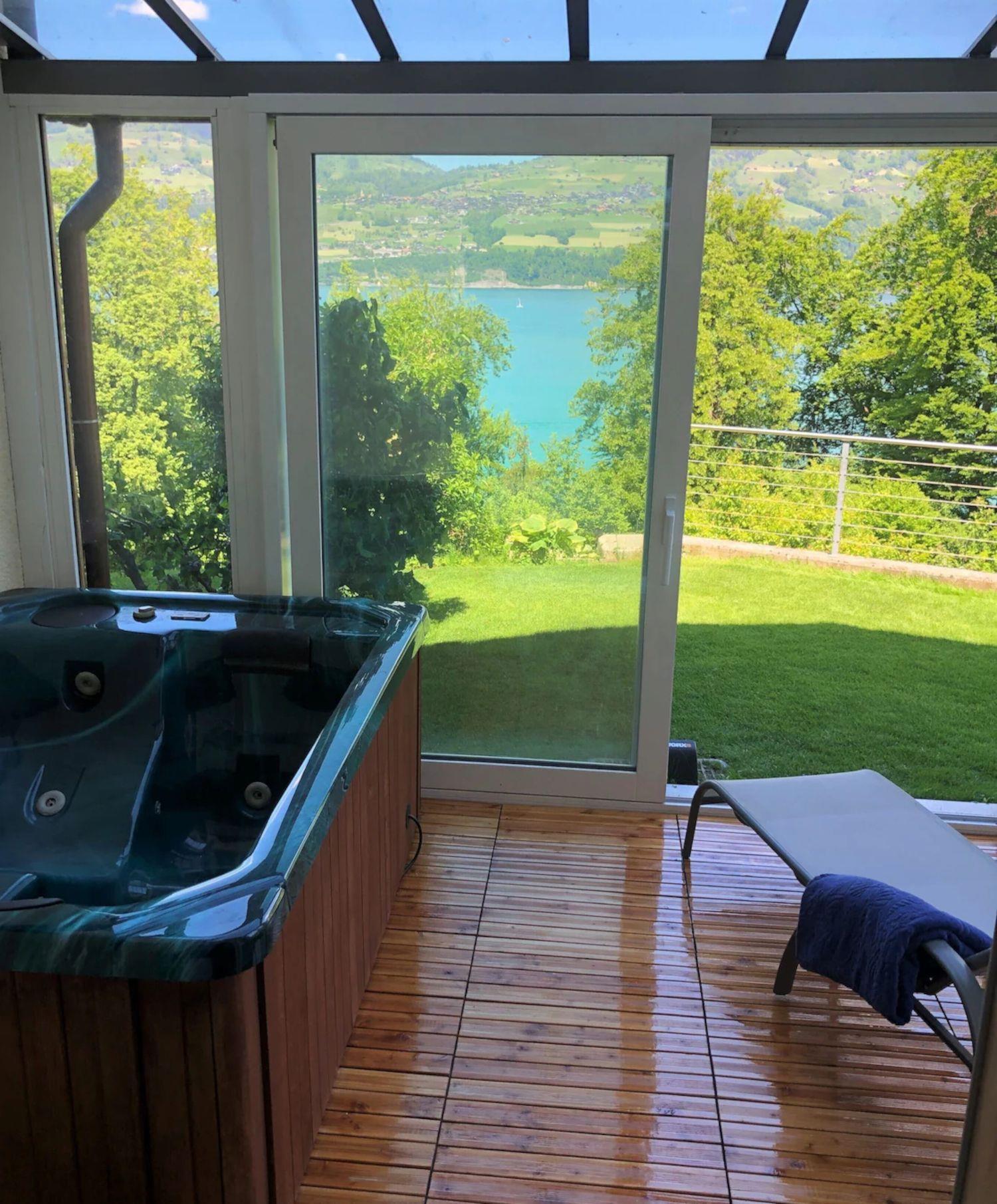 64 m2, davon 18m2 (unbeheizter) Wintergarten mit Whirlpool