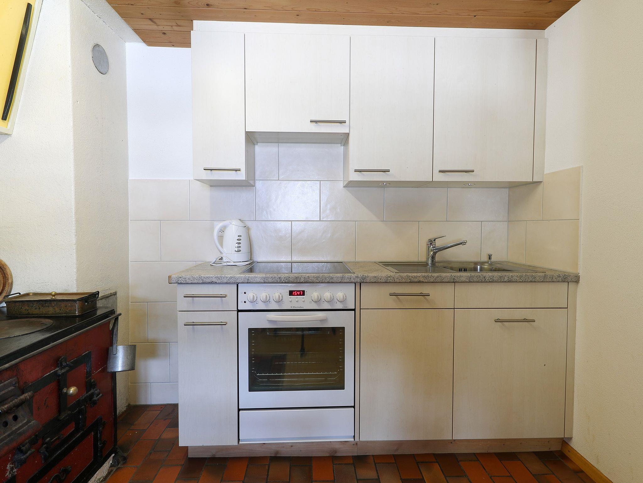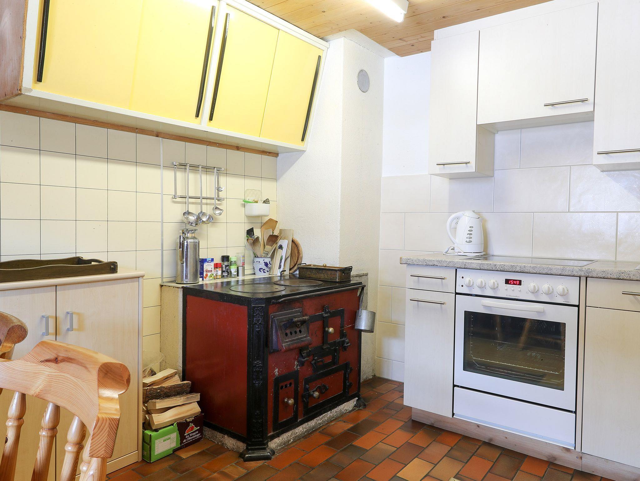 Die gemütliche Ferienwohnung verfügt im Parterre über eine schöne Wohnküche und einem rustikalen Wohnzimmer mit Holzofen. Im Obergeschoss befinden sich drei Schlafzimmer. Ein Schlafzimmer verfügt über ein Doppelbett (mit getrennten Matratzen), ein Etagenbett und ein Kinderbett. Das zweite Schlafzimmer ist mit einem Doppelbett (mit getrennten Matratzen) ausgestattet und im dritten Zimmer befindet sich ein Etagenbett.