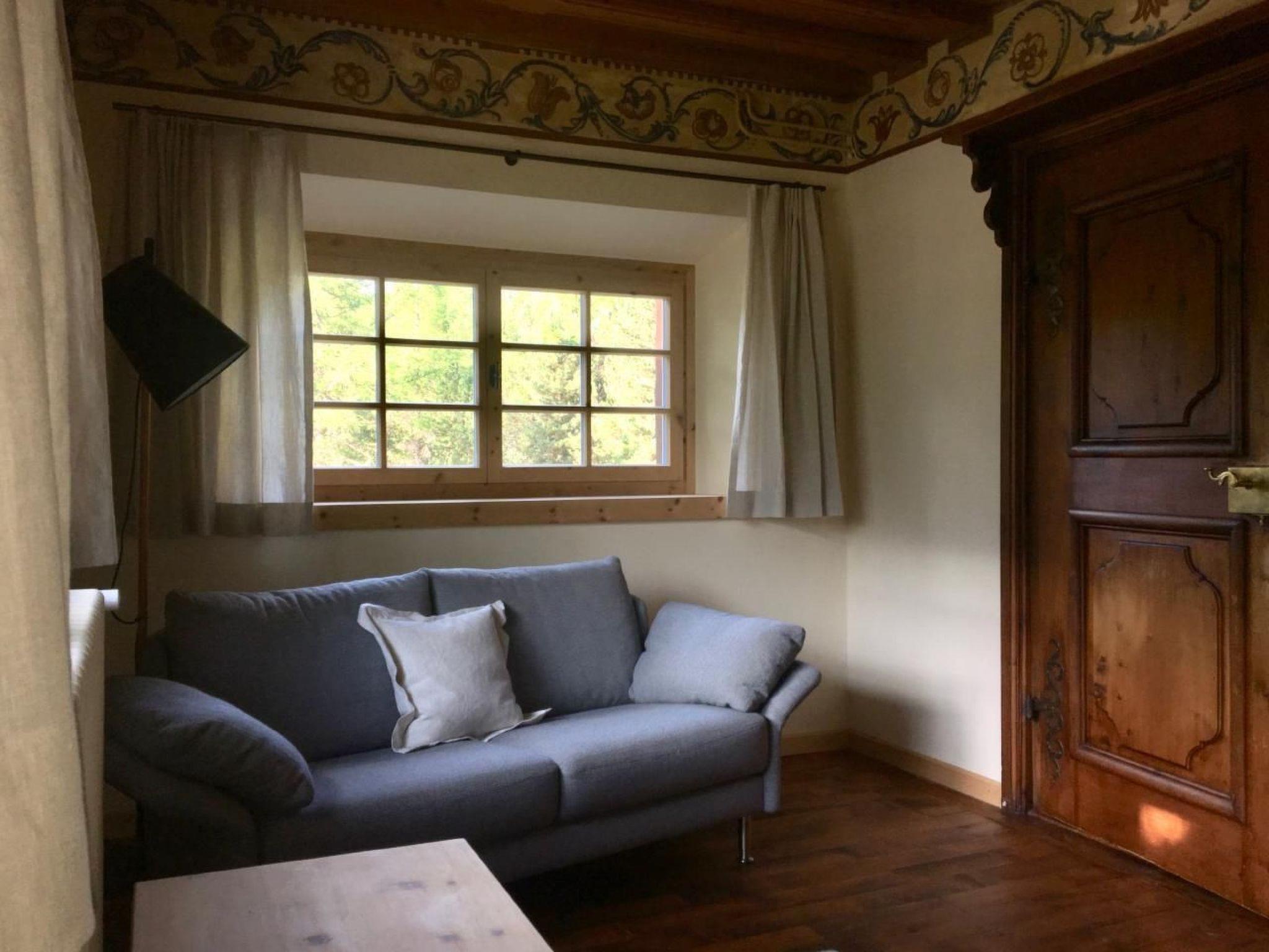 Allegra-Ferien im Arvenwald Die Chesa Bindschedler wurde in den 1920-er Jahren vom Förster Walter Riesch erbaut. Viele kleine Details erzählen die Geschichte des Hauses, ihres Erbauers und ihrer Gäste. Seit 1946 ist das Haus im Besitz der Familie Bindschedler und wird von ihr als Ferienhaus und Familientreffpunkt benützt. Die Chesa Bindschedler steht etwas oberhalb des Dorfes Champfèr mitten im lichten Bergwald. Die Aussicht auf die Oberengadiner Seenlandschaft ist bezaubernd, der Garten mit eigener Grillstelle steht allen Gästen zur Verfügung. Das Haus vereint 2 Ferienwohnungen mit separaten Eingängen unter einem Dach. Die Wohnungen sind mit viel Liebe eingerichtet und werden sorgfältig gepflegt. Die Einrichtung besteht grösstenteils aus Massiv-Arvenholz. Die Wohnung im Parterre bietet Platz für 4 Personen. Sie besteht aus zwei Doppelschlafzimmern, Stube mit Kachelofen, Bad, separate Dusche, separates WC, Küche mit Essecke, geräumigem Korridor, direktem Zugang zum Garten und zum Gartensitzplatz.