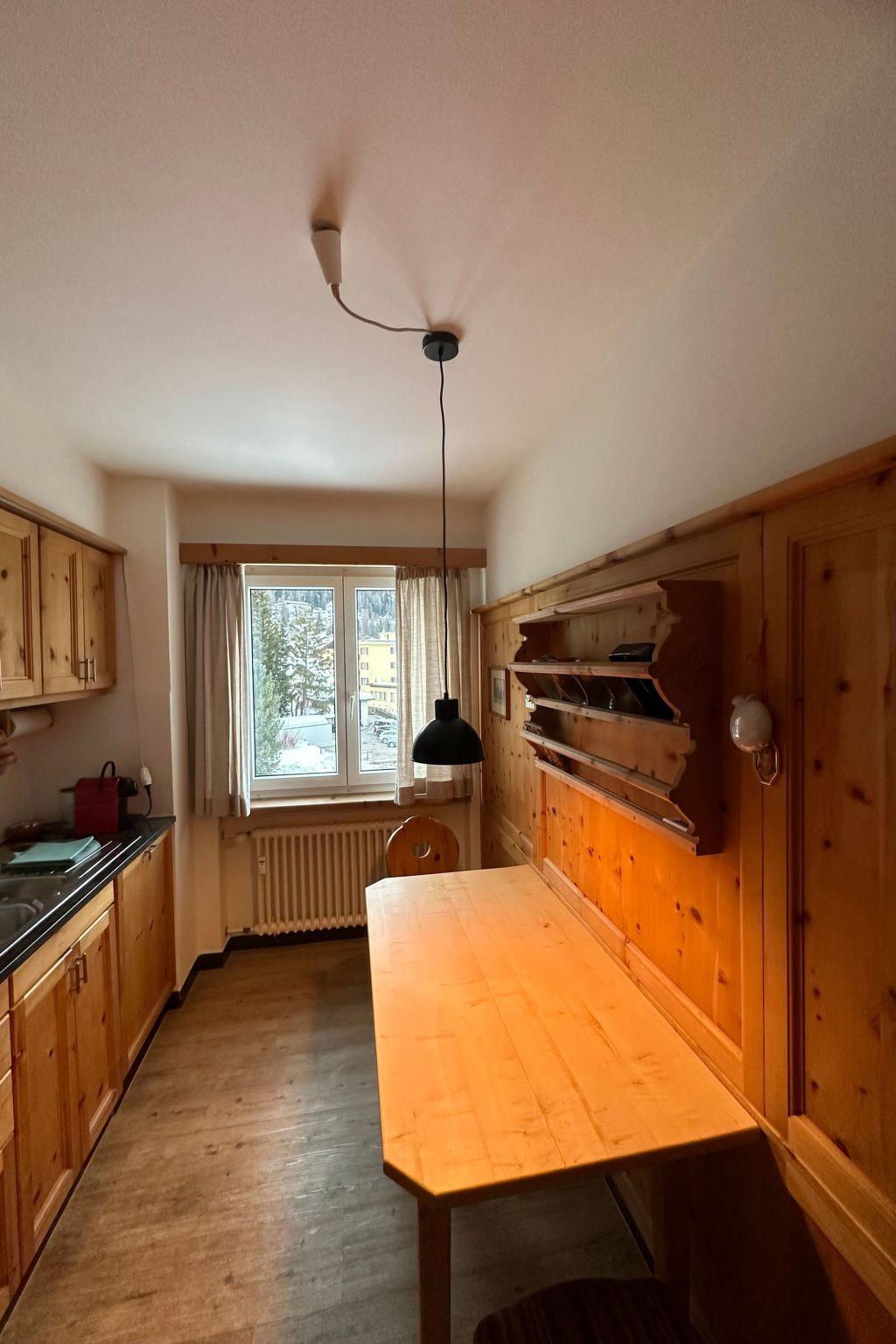 3-Zimmer-Wohnung (84 m2) im 3. Stock eines Mehrfamilienhauses. Sehr gute Lage, sehr zentral als Ausgangspunkt für jegliche Aktivitäten! Wohnung mit Wohnzimmer, 2 Schlafzimmer (1 x 2 Einzelbetten, 1 x Doppelbett), Wohnküche (klein) mit Geschirrspülmaschine, Mikrowelle, Backofen, Kühlschrank, Kaffeemaschine. Bad/WC. Balkon. Sat-TV, Internet, W-Lan, Radio und Telefon. Lift. Skiraum und Waschküche zur Mitbenützung. Tiefgaragenstellplatz ist auf Grund der Höhe nicht mit Dachbox oder Skiständer auf grösseren Autos befahrbar.