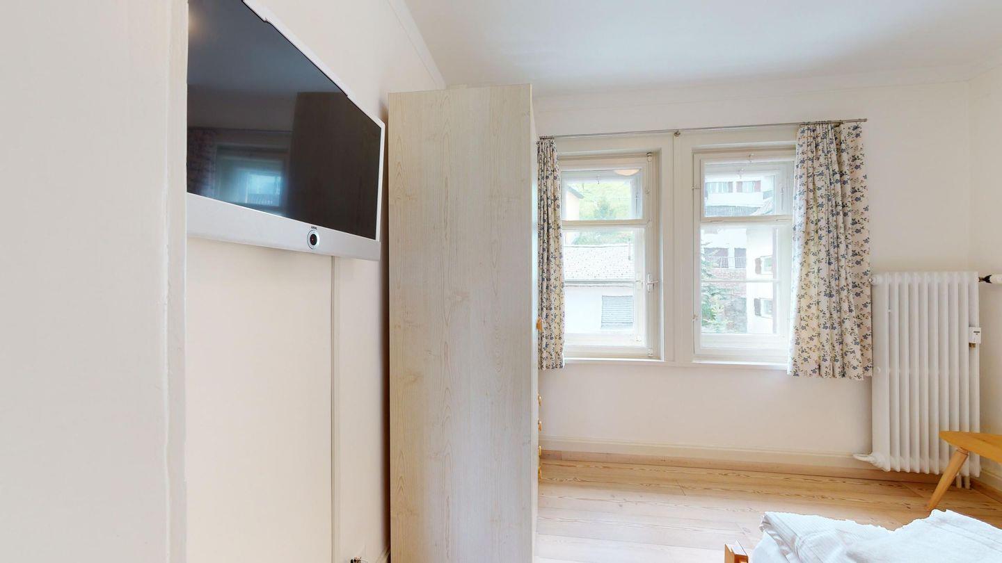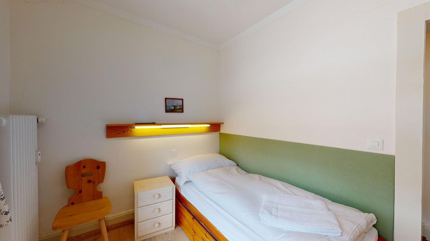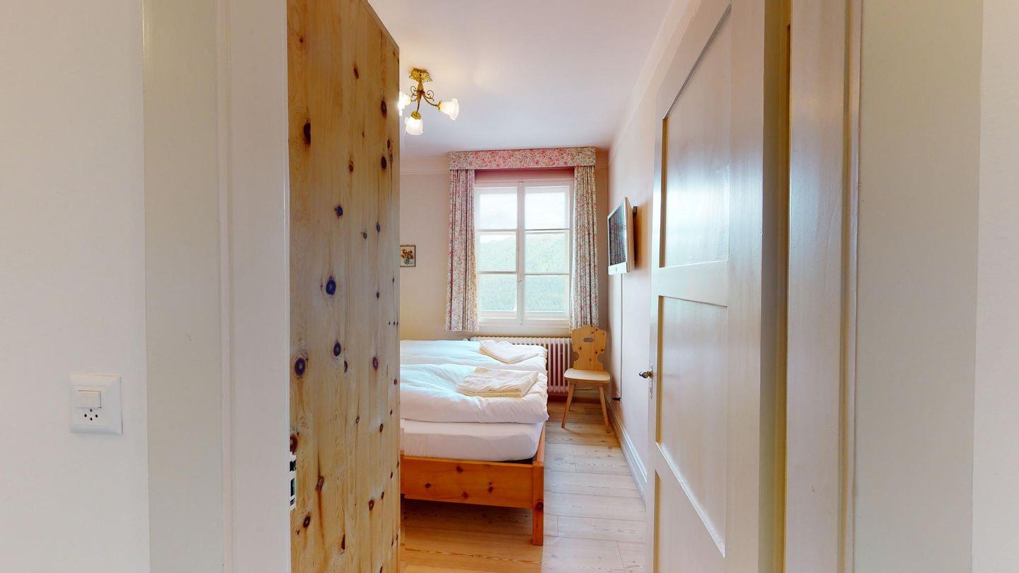 3-Zimmer-Wohnung im Dachgeschoss für 4 Personen. Eingang mit Garderobe, Wohnzimmer mit Wohn- und Essbereich und Ausgang zum Dachbalkon. Geschlossene Küche mit Ofen und Geschirrspüler, Chicco d'Oro Kaffeemaschine, Raclette und Fondue Sets. Ein Doppelschlafzimmer mit TV. Ein Schlafzimmer mit zwei Einzelbetten und TV. Badezimmer mit Bad, Dusche, WC und Lavabo. 1 Parkplatz. Gemeinsame Waschküche und Skiraum. Haustiere sind nicht erlaubt.