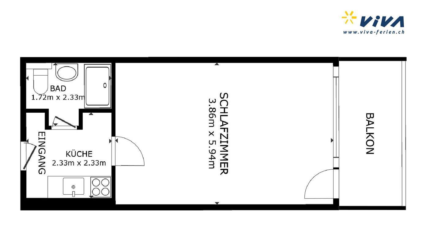 Gemütliche 1- Zimmer-Ferienwohnung im 3. Stock. Liebevoll renoviertes Wohn- /Esszimmer mit wohlriechendem Arvenholz. Überdachter Balkon mit Verglasung die je nach Witterung geöffnet/geschlossen werden kann. Kleine Küche, Bad mit Dusche, Wohn- /Esszimmer mit 2 integrierte Schrankbett 80/200cm. Im Ferienhaus befindet sich ein Lift. Beschränkte Anzahl Aussenparkplätze (max. 1 Auto/Wohnung, nicht reserviert). Fitnessraum zur öffentlichen Nutzung befindet sich im Ferien-Wohnhaus.