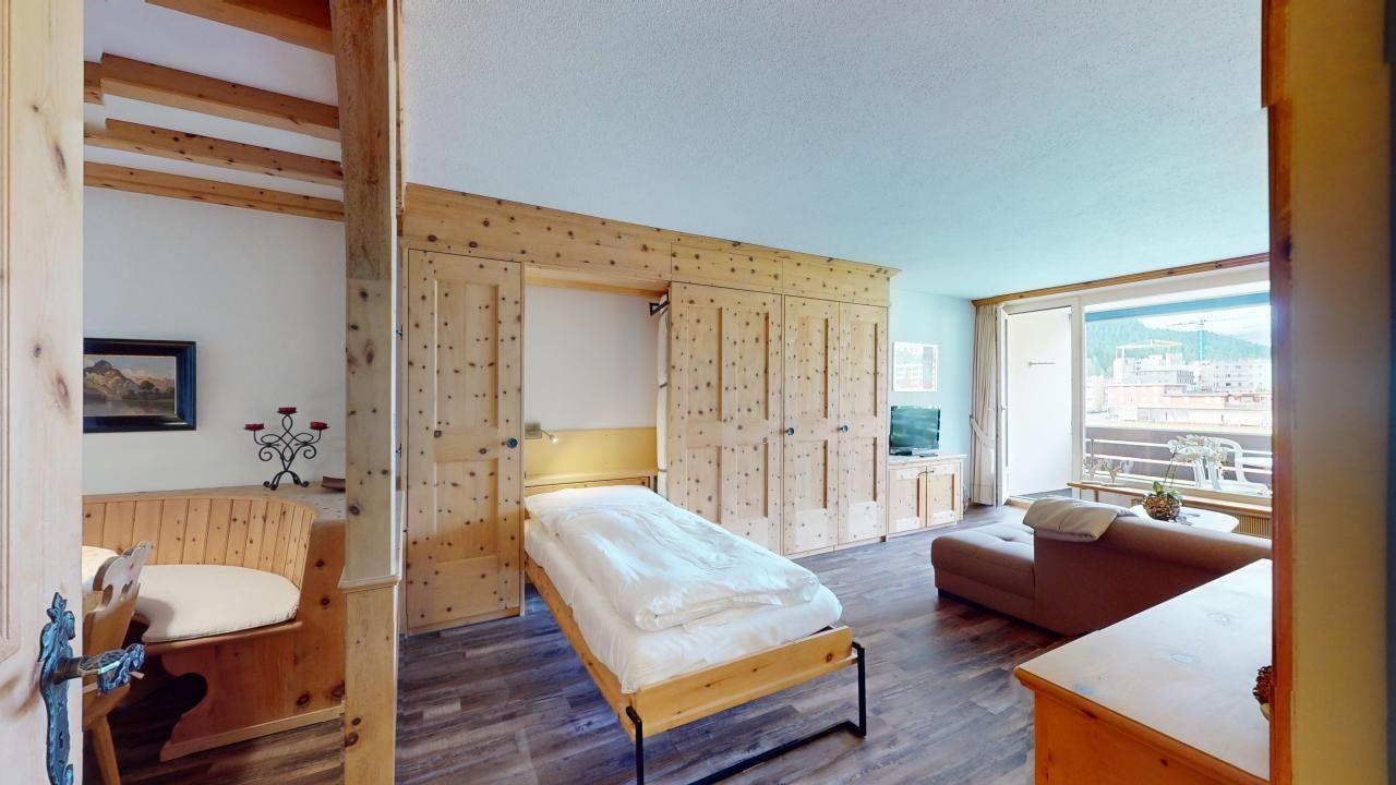Genießen Sie einen unvergesslichen Aufenthalt in dieser authentischen und gemütlichen 2,5-Zimmer-Ferienwohnung im 2. Obergeschoss. Der angenehme Duft von Arvenholz verleiht der Wohnung eine besondere Atmosphäre. Das Wohn- und Esszimmer bietet einen optisch abgetrennten Essbereich sowie praktische, integrierte Schrankbetten (80 x 200). Entspannen Sie auf dem überdachten Balkon mit schöner Aussicht. Die gut ausgestattete Küche und das Badezimmer mit Dusche sorgen für Komfort. Ein separates Doppelschlafzimmer rundet das Angebot ab. Ein Lift im Ferienhaus erleichtert den Zugang, und Sie profitieren von einem Parkplatz in einer Garagenbox. Für aktive Gäste steht ein Fitnessraum zur öffentlichen Nutzung im Ferienhaus zur Verfügung.