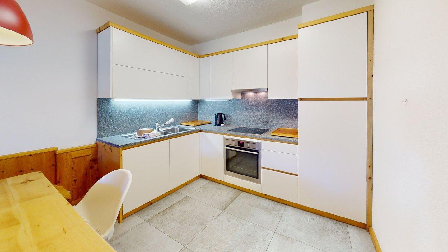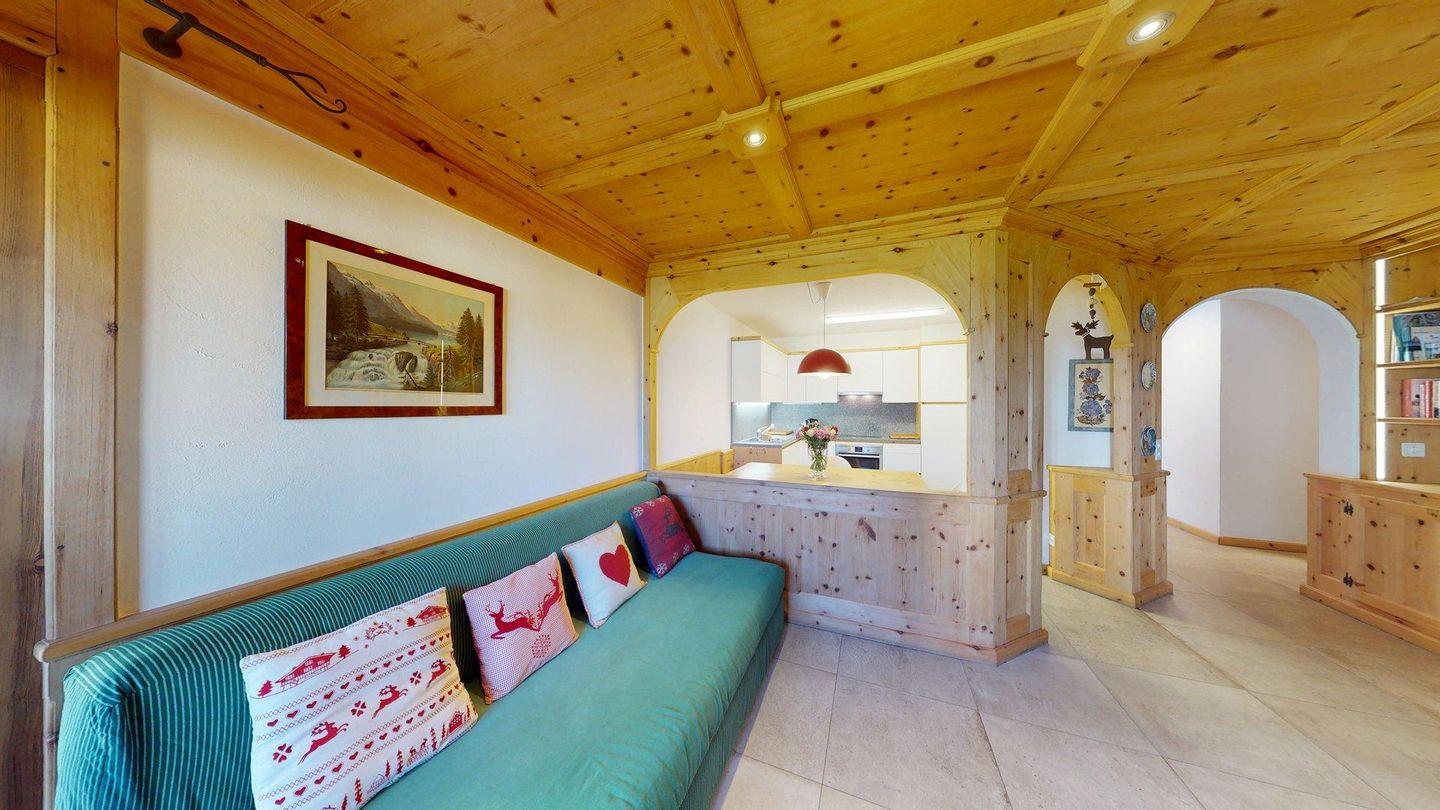 Mit wohlriechendem Arvenholz ausgestattete, renovierte 3.5-Zimmer-Ferienwohnung mit schöner Seesicht auf den St. Moritzersee sowie herrlicher Aussicht auf Muottas Muragl. Helles Wohn- / Esszimmer mit offener Küche und sonnigem Balkon. Hauptschlafzimmer mit Doppelbett, ein zweites Schlafzimmer mit Doppel-Schlafsofa. Zwei moderne Badezimmer: eines mit Badewanne/Dusche, WC und integrierter Waschmaschine, das andere mit Dusche und WC. 1 Garagenparkplatz, Lift im Haus, kostenloses WLAN.