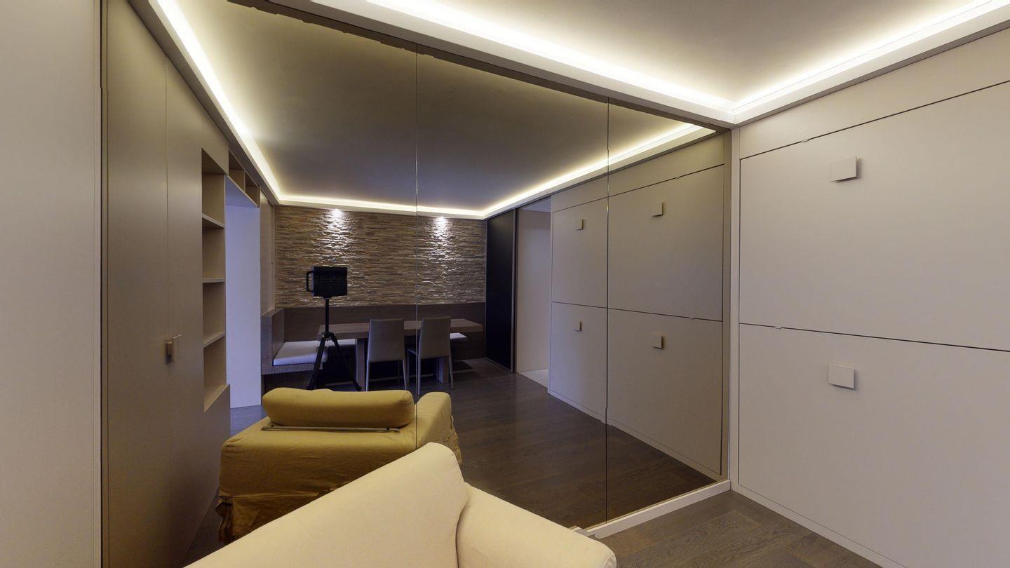 Das Studioapartment ist einladend gestaltet. Ihr Licht durchflutetes Wohnzimmer, das offen zur Küche ist, schafft eine gemütliche Atmosphäre, in der sich jeder sofort wohlfühlt. Hier finden Sie ein komfortables Sofa, einen Esstisch und einen Fernseher. Die gut ausgestattete Küche bietet alles, was Sie benötigen – von einem Herd und Backofen über eine Spülmaschine bis hin zu einer Nespresso-Maschine.