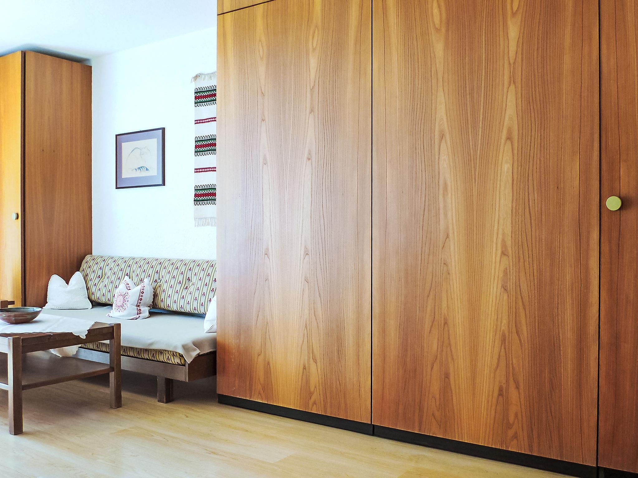 "Castor 202", 1-Zimmer-Wohnung 30 m2. Wohn-/Esszimmer mit 1 Doppelwandschrankbett (2 x 90 cm, Länge 200 cm), Sat-TV und Radio. Kochnische (3 Kochplatten, Backofen, elektrische Kaffeemaschine). Dusche/WC. Balkon, Südlage. Zur Verfügung: Internet (Wireless LAN, gratis). Bitte beachten: Nichtraucher-Unterkunft. Maximal 1 Haustier/Hund erlaubt.