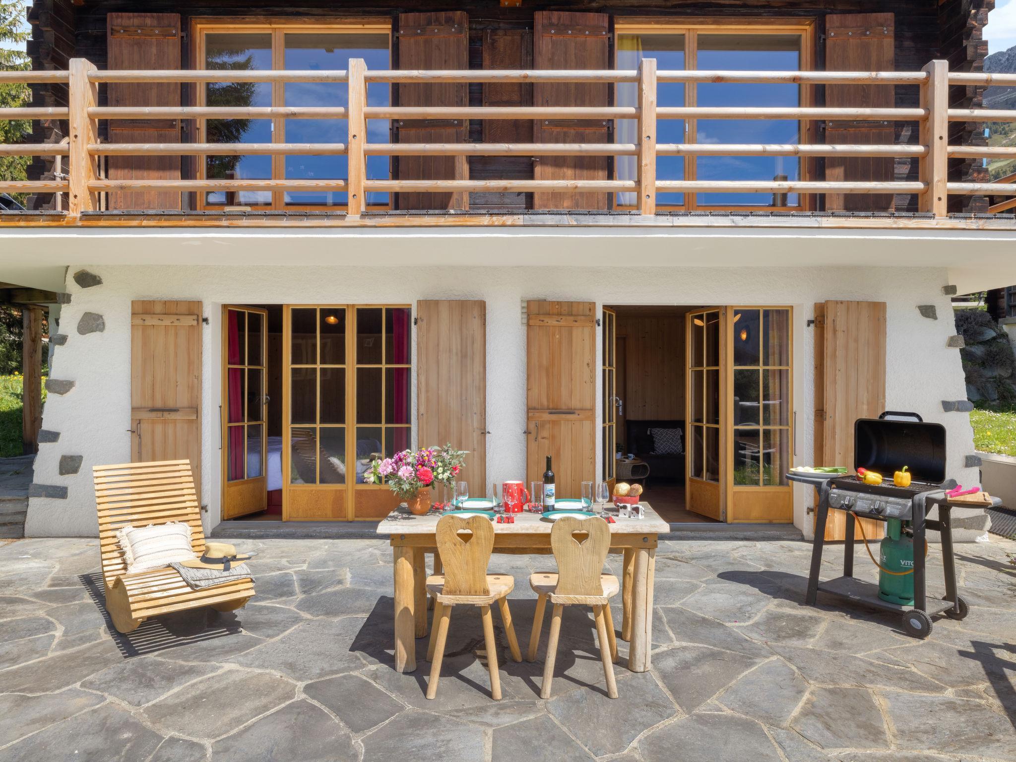 "Fury rez", 3-Zimmer-Wohnung 50 m2, im erhöhten Erdgeschoss. Teilweise renoviert im Jahre 2021, schön und mit viel Holz eingerichtet: kleines Wohn-/Esszimmer. 1 Zimmer mit 1 franz. Bett (1 x 160 cm, Länge 200 cm), Kabel-TV. 1 kleines Zimmer mit 1 Bett (90 cm, Länge 190 cm). Kochnische (Backofen, Geschirrspüler, Toaster, Mikrowelle, elektrische Kaffeemaschine, Kapseln für die Kaffeemaschine (Nespresso) extra, Fondue Set (Käse)). Ausgang zum Garten, zur Terrasse. Dusche, sep. WC. Grosse Terrasse 30 m2, Rasen 30 m2. Gartengrill, Sitzplatz. Seitliche Sicht auf die Berge. Zur Verfügung: Waschmaschine, Haartrockner. Internet (Wireless LAN, gratis). Garage Nr. Privé. Bitte beachten: Nichtraucher-Unterkunft.