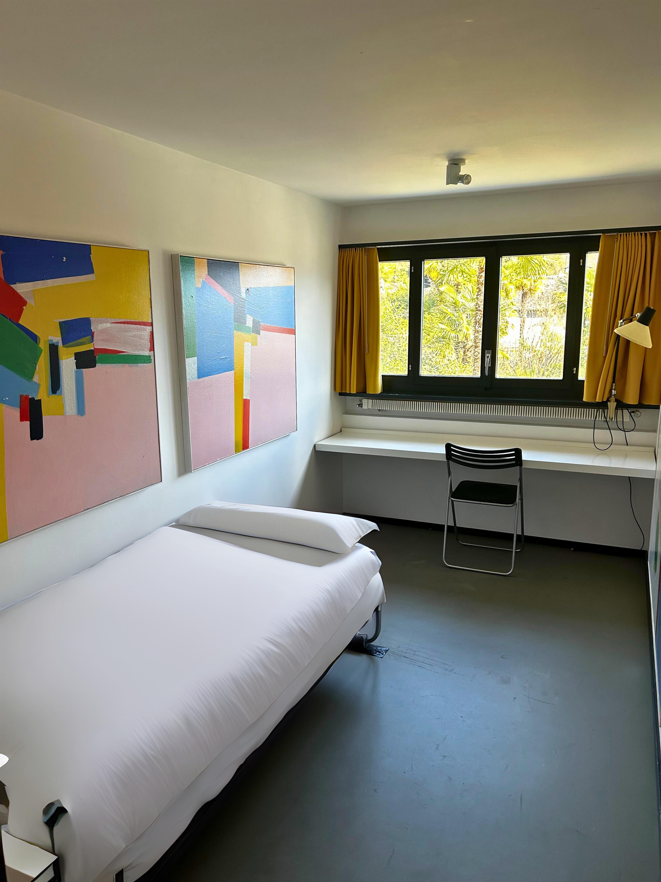 Gleich neben dem Wohnzimmer befinden sich der Essbereich für vier Personen und die angrenzende, gut ausgestattete Küche - beide mit Blick in den Garten und direkten Zugängen zur Terrasse. Über die Treppe gelangen sie zur zweiten Wohnebene. Auch hier offenbart sich die zurückhaltende Poesie Snozzis. Die vier Schlafzimmer und ein Aufenthaltsraum sind in dem für den Architekten typischen, fein komponierten Minimalismus gehalten. Zusätzlich gibt eine gemütliche Leseecke mit unzähligen Buchschätzen, in der Sie herrlich die Zeit an sich vorbeiziehen lassen können.