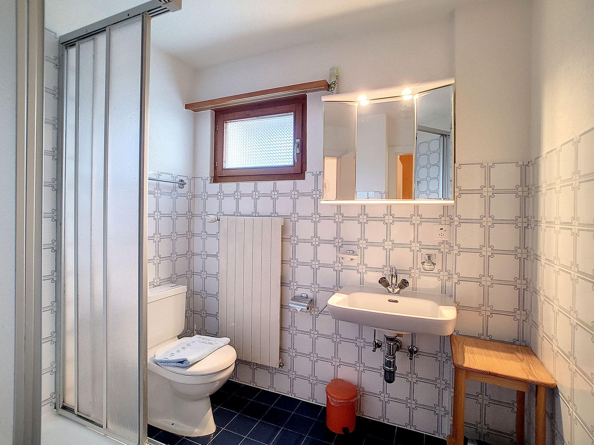 3-Zimmer-Wohnung 70 m2, im Erdgeschoss. Objekt geeignet für 4 Erwachsene + 2 Kinder. Wohn-/Esszimmer mit Kabel-TV. Ausgang zur Terrasse. 1 Zimmer mit 2 Betten (90 cm, Länge 200 cm). 1 Zimmer mit 1 Bett (90 cm, Länge 190 cm), 1 Doppelbett (2 x 80 cm, Länge 200 cm). Eingang mit 1 x 2 Etagenbetten (80 cm, Länge 190 cm). Offene Küche (Backofen, Geschirrspüler, 4 Glaskeramikplatten, Toaster, Wasserkocher, Mikrowelle, elektrische Kaffeemaschine, Racletteofen, Fondue Set (Käse)). 2 Duschen/WC. Terrasse, Rasen. Schöne Sicht auf das Tal. Zur Verfügung: Haartrockner. Internet (Wireless LAN, gratis). Parkplatz (überdacht, 1 Auto) in 50 m. Bitte beachten: Nichtraucher-Unterkunft. Anstelle eines abgeschlossenen Schlafzimmers befinden sich manche Schlafplätze in einem offenen Bereich (Galerie, Nische etc.).