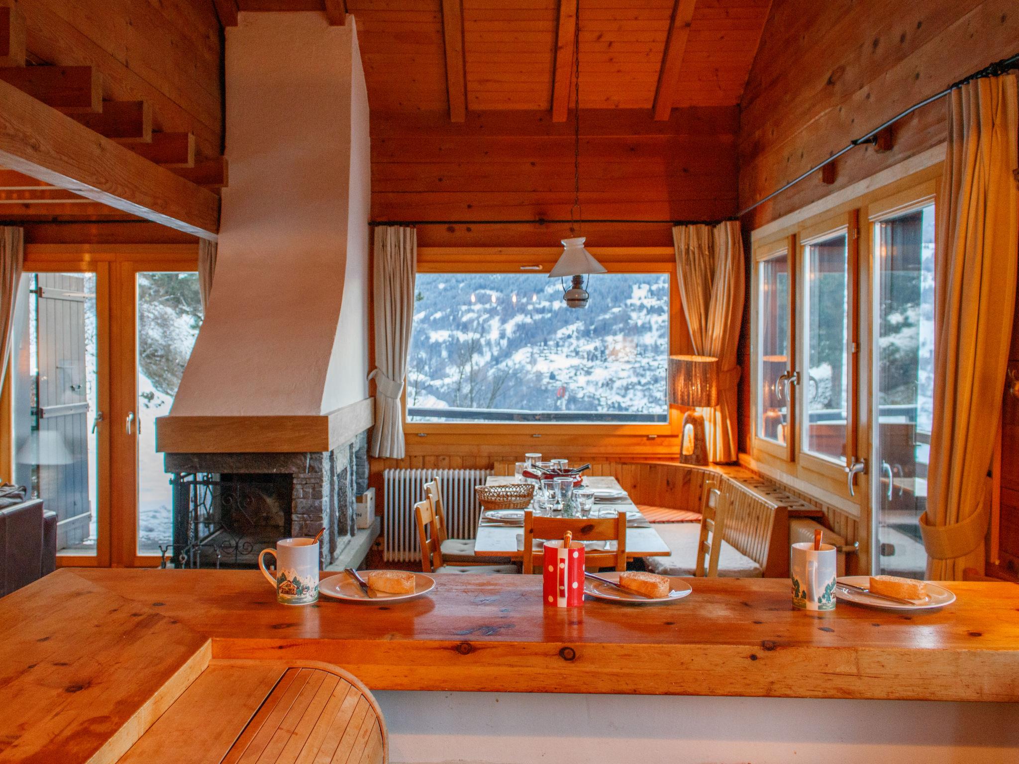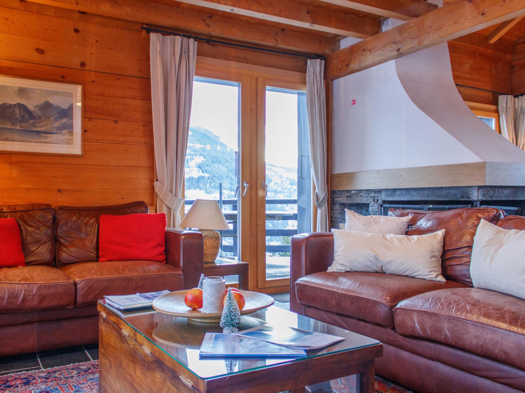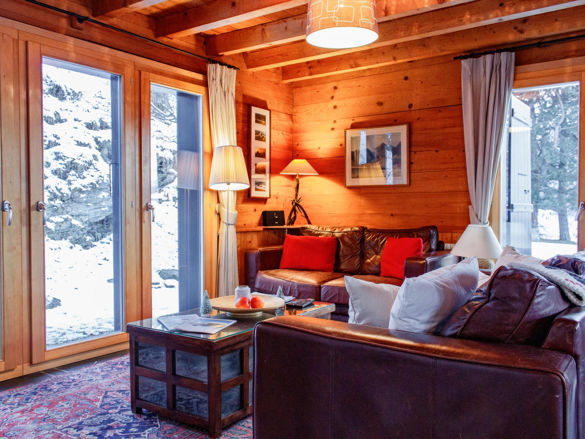 "Crettamour", 5-Zimmer-Chalet 170 m2 auf 3 Stockwerken. Komfortabel und geschmackvoll eingerichtet: Eingang. Wohn-/Esszimmer mit offenem Kamin, Kabel-TV und DVD. Ausgang zur Terrasse. Offene Küche (Backofen, Geschirrspüler, 4 Glaskeramikplatten, Toaster, Wasserkocher, Mikrowelle, elektrische Kaffeemaschine, Kapseln für die Kaffeemaschine (Nespresso) extra, Racletteofen, Fondue Set (Käse)). Dusche/WC. Heizung. Unteres Geschoss: 1 Zimmer mit 2 Betten (75 cm, Länge 190 cm). 1 Zimmer mit 1 franz. Bett (1 x 160 cm, Länge 200 cm). 1 Zimmer mit 2 Betten (90 cm, Länge 190 cm). Bad/WC. Obergeschoss: 1 Zimmer mit 2 Betten (90 cm, Länge 190 cm). Balkon, Nordlage, grosse Terrasse, Westlage. Terrassenmöbel, Gartengrill. Sehr schöne Sicht auf die Berge und das Tal. Zur Verfügung: Waschmaschine, Wäschetrockner, Kinderhochstuhl, Babybett bis 2 Jahre. Internet (WLAN, gratis). Parkplatz (2 Autos) in 50 m. Bitte beachten: Nichtraucher-Unterkunft.