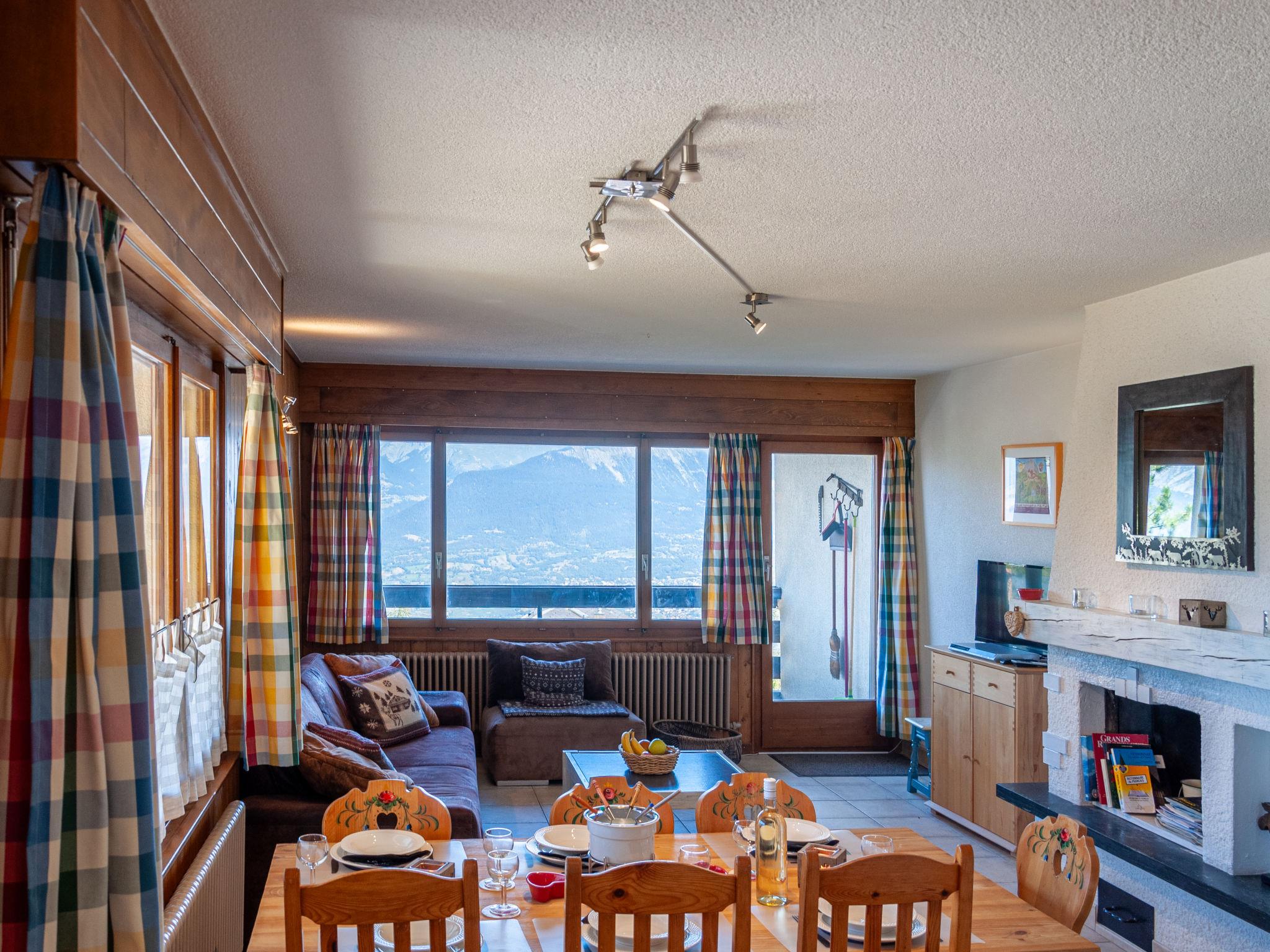 "Magrappé 344", 4-Zimmer-Wohnung 90 m2 im 3. Stock. Komfortabel und schön eingerichtet: Wohn-/Esszimmer mit offenem Kamin (nur Deko), Kabel-TV und DVD. Ausgang zum Balkon, Richtung Norden und Richtung Westen. 1 Zimmer mit 1 x 2 Etagenbetten (90 cm, Länge 200 cm). 1 Zimmer mit 1 Doppelbett (2 x 90 cm, Länge 200 cm). 1 Zimmer mit 1 franz. Bett (140 cm, Länge 200 cm). Offene Küche (3 Kochplatten, Backofen, Geschirrspüler, Wasserkocher, Mikrowelle, elektrische Kaffeemaschine, Kapseln für die Kaffeemaschine (Nespresso) extra, Fondue Set (Chinoise, Käse)). Bad/WC, sep. WC. Balkonmöbel. Schöne Sicht auf die Berge, das Tal und die Skipiste. Zur Verfügung: Haartrockner. Internet (WLAN, gratis). Bitte beachten: Nichtraucher-Unterkunft, kein Parkplatz.