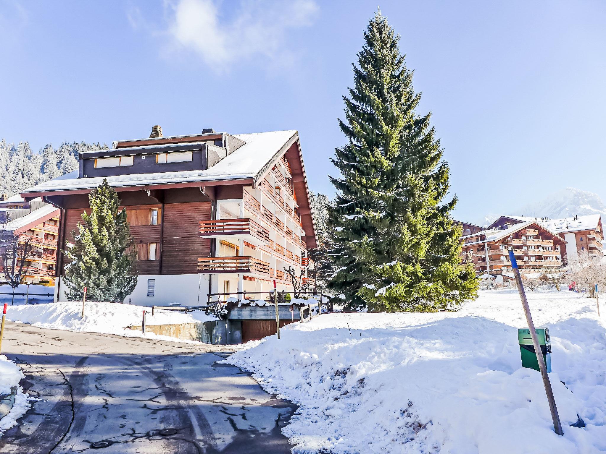 Roches Grises: Residenz "Diamant", auf 5 Stockwerken. Oberhalb von Villars, sonnige Lage, 200 m vom Skigebiet, Richtung Süden. Zur Mitbenutzung: Garten mit Rasen und Pflanzen. Im Hause: Fahrstuhl, Skiraum, Zentralheizung, Waschmaschine (zur Mitbenutzung, extra), Trockenraum. Im Winter bitte Schneeketten mitbringen. Öffentliche Parkplätze. Einkaufsgeschäft 1 km, Lebensmittelgeschäft, Restaurant 700 m, Bäckerei 900 m, Zentrum zu Fuss in 12 Minuten erreichbar, Bushaltestelle 1 km, Bahnstation "Roches Grises" 20 m, Hallenbad 1.6 km, Thermalbad "Lavey-es-Bains" 19 km. Sporthafen 25 km, Golfplatz (18 Loch) 7 km, Tennishalle, Sportzentrum 160 m, Bergeisenbahn 100 m, Gondelbahn 1.6 km, Skibushaltestelle 1 km, Skischule 1.4 km, Kinderskischule 160 m, Eisfeld 1.6 km, Kinderspielplatz 1.4 km. Bitte beachten: Fahrstuhl nur bis 3. Stock. Der gratis Skibus fährt zum Skigebiet Villars.
