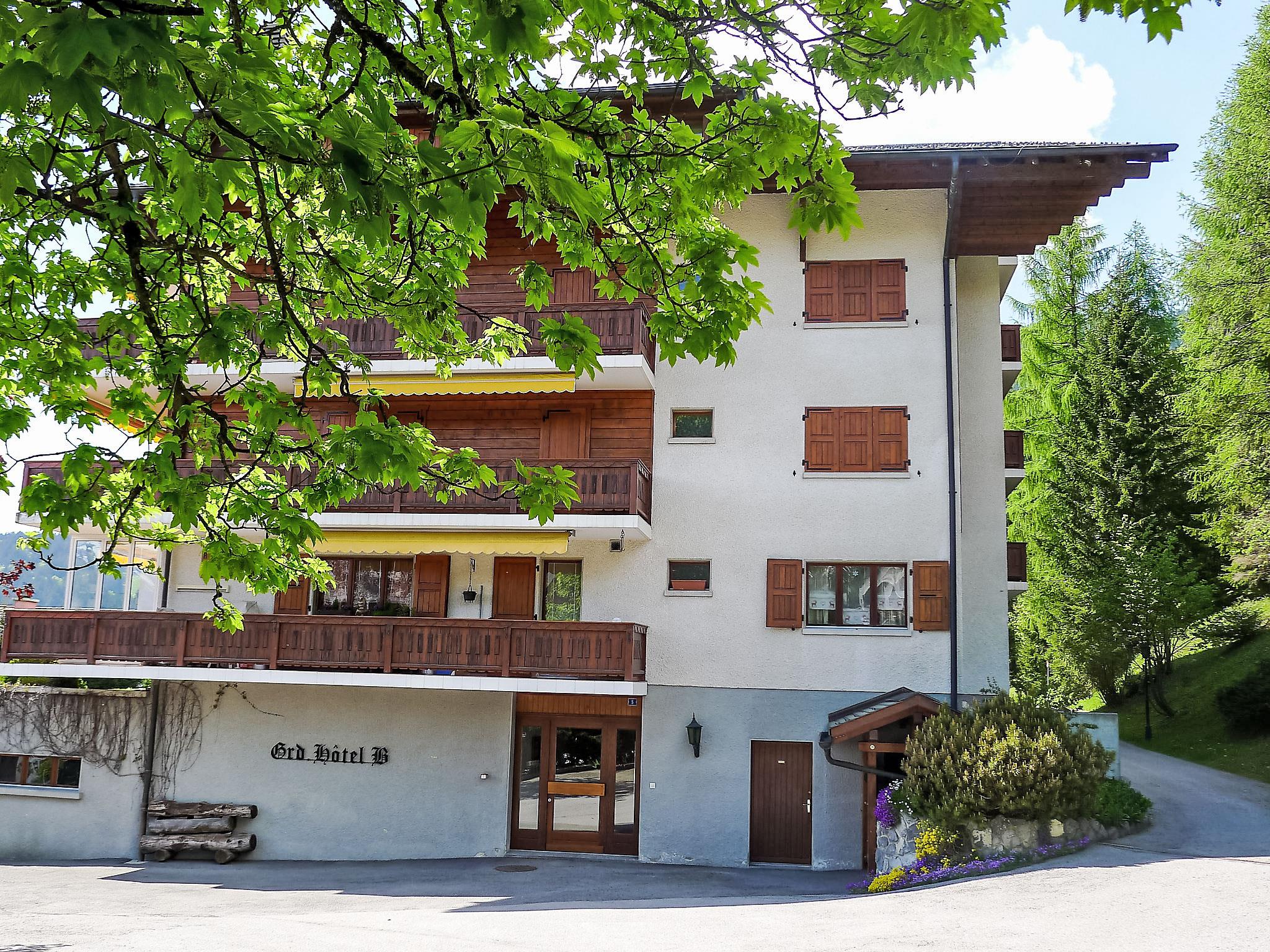 Appartementhaus "Grand-Hôtel". Im Ortszentrum von Villars, 500 m vom Skigebiet, Richtung Süden. Zur Mitbenutzung: Hallenbad (14 x 6 m, 80 - 140 cm tief, saisonale Verfügbarkeit: 10.Dez. - 01.Nov.). Tennis, Tischtennis. Im Hause: Sauna, Fahrstuhl, Skiraum, Zentralheizung, Waschmaschine (extra), Wäschetrockner. Parkplatz. Lebensmittelgeschäft 100 m, Restaurant 200 m, Zentrum zu Fuss in 3 Minuten erreichbar, Bushaltestelle 900 m, Bahnstation "Villars" 900 m, Hallenbad 1 km, Thermalbad "Lavey-les-bains" 19 km. Sporthafen 25 km, Golfplatz (18 Loch) 7 km, Tennishalle 1.4 km, Sportzentrum 1.4 km, Bergeisenbahn 900 m, Gondelbahn 1.6 km, Skibushaltestelle 900 m, Skischule 800 m, Kinderskischule 1.4 km, Eisfeld 1 km, Kinderspielplatz 1 km. Der gratis Skibus fährt zum Skigebiet Villars. Bitte beachten: Weitere Unterkünfte sind buchbar. Nach den Osterferien bleibt das Schwimmbad eine Woche lange geschlossen.