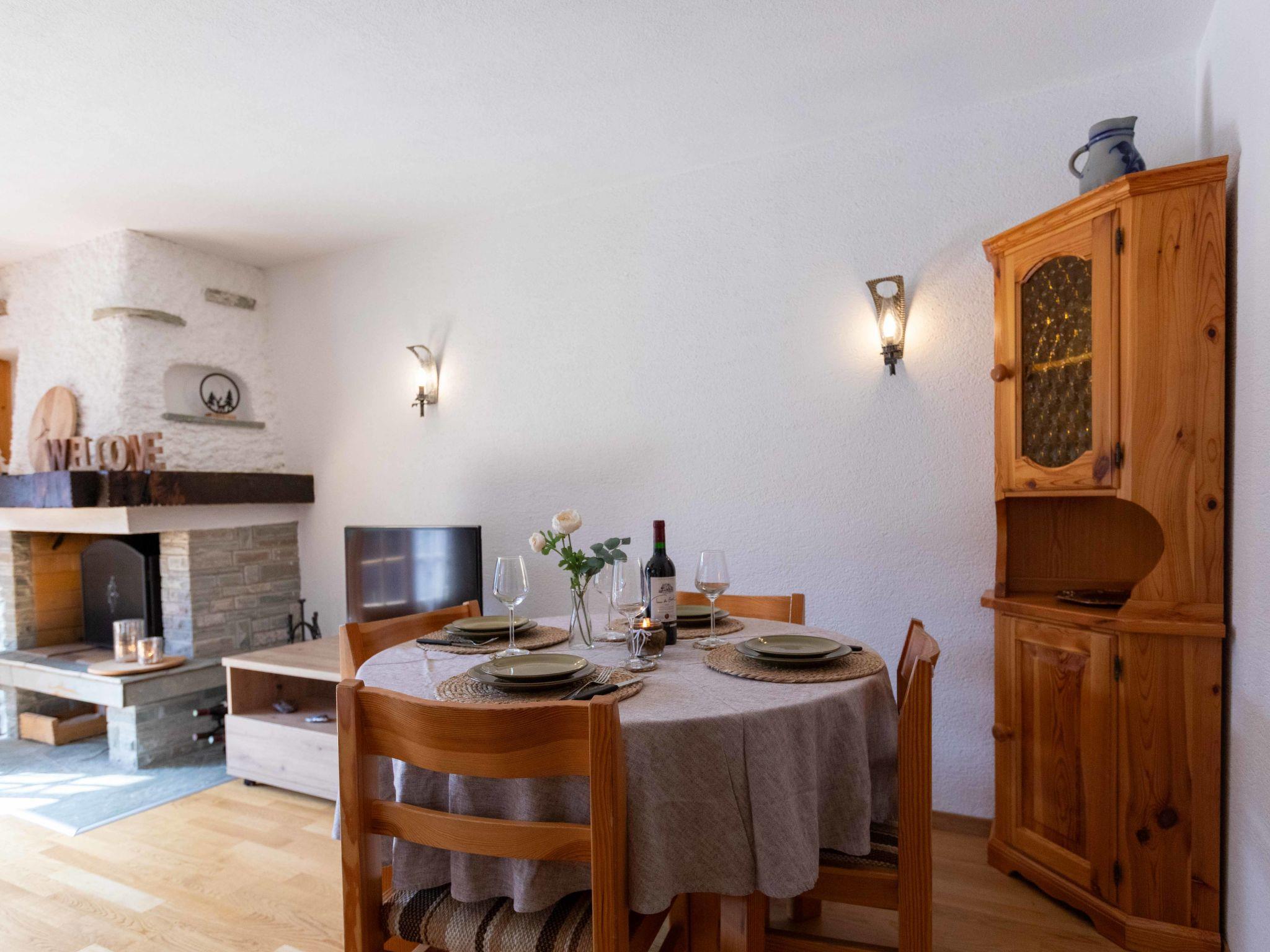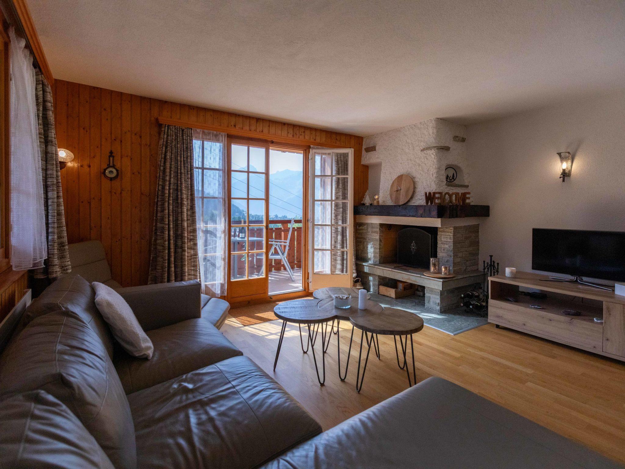 "Vermont 8", 3-Zimmer-Wohnung 55 m2 im 2. Stock. Objekt geeignet für 2 Erwachsene + 2 Kinder. Zweckmässig und komfortabel eingerichtet: Wohn-/Esszimmer mit offenem Kamin und Sat-TV. Ausgang zum Balkon, Richtung Süden. 1 Zimmer mit 2 Betten (90 cm, Länge 200 cm). 1 Kinderzimmer mit 1 x 2 Etagenbetten (90 cm, Länge 200 cm). Kleine Küche (4 Kochplatten, Backofen, Geschirrspüler, Gasherd, Toaster, elektrische Kaffeemaschine, Kapseln für die Kaffeemaschine (Dolce Gusto) extra, Racletteofen, Fondue Set (Chinoise, Käse)). Bad/Bidet/WC, sep. WC. Grosser Balkon. Balkonmöbel. Sehr schöne Sicht auf die Berge, die Skipiste und die Landschaft. Zur Verfügung: Haartrockner. Internet (WLAN, extra). Parkplatz beim Haus. Bitte beachten: Nichtraucher-Unterkunft. Maximal 1 kleines Haustier/Hund erlaubt.