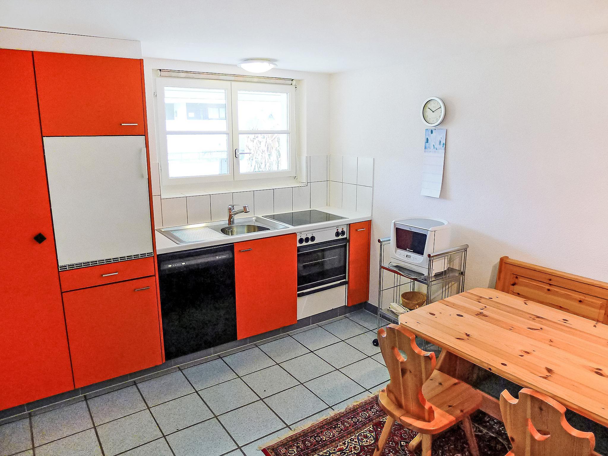 1-Zimmer-Wohnung 31 m2, im Erdgeschoss. Zweckmässig und gemütlich eingerichtet: 1 Zimmer 17 m2 mit 1 Doppelbett und Sat-TV (Flachbildschirm). Ausgang zum Gartensitzplatz. Wohnküche (Backofen, Geschirrspüler, 4 Glaskeramikplatten, Mikrowelle) mit Esstisch. Dusche/WC. Gartensitzplatz 8 m2, Südlage. Terrassenmöbel, Wintergarten. Eingeschränkte Sicht auf den See, die Berge und die Ortschaft. Zur Verfügung: Internet (Wireless LAN, gratis). Parkplatz beim Haus. Bitte beachten: Nichtraucher-Unterkunft.