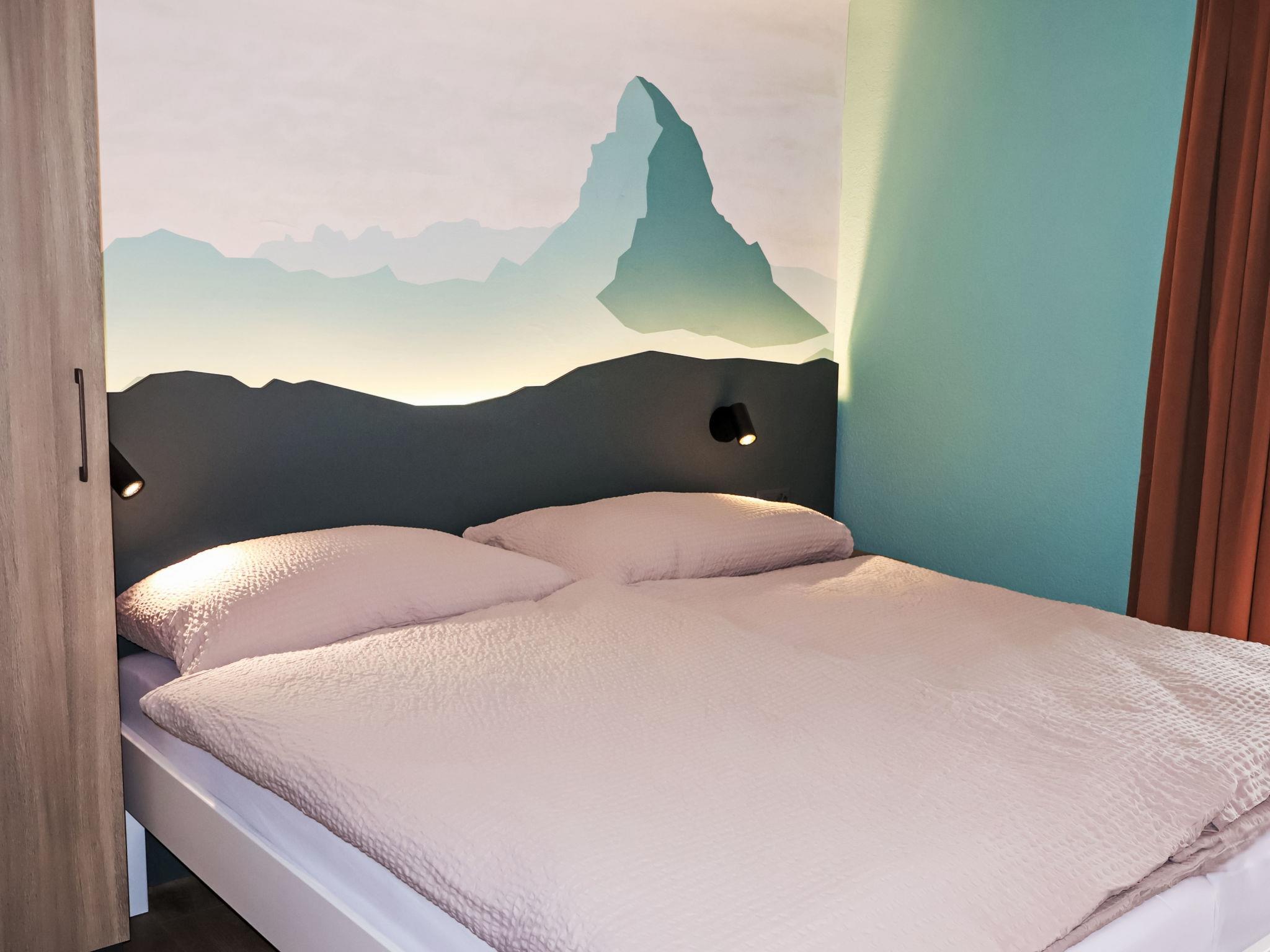 "Juliana 825", 1-Zimmer-Wohnung 21 m2 im 2. Stock. Vollständig renoviert im Jahre 2025, schön und stilvoll eingerichtet: Wohn-/Schlafzimmer mit 1 Doppelbett (2 x 90 cm, Länge 200 cm), Esstisch und Digital-TV. Ausgang zum Balkon. Offene Küche (Backofen, Geschirrspüler, 4 Glaskeramikplatten, Toaster, Wasserkocher, Mikrowelle, Tiefkühler, elektrische Kaffeemaschine, Racletteofen, Fondue Set (Käse)). Dusche/WC. Balkon, Westlage. Balkonmöbel. Sicht auf die Berge. Zur Verfügung: Haartrockner. Internet (WLAN, gratis). Bitte beachten: Nichtraucher-Unterkunft.