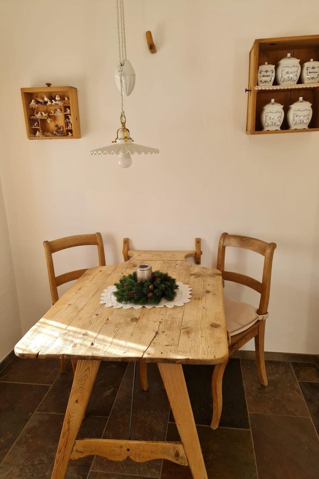 Im Inneren erwartet Sie eine gemütliche Atmosphäre, unterstützt durch einen Steinboden mit Bodenheizung. Die gut eingerichtete Küche bietet alles, was das Herz begehrt: 2 Kochplatten, Kühlschrank mit Tiefkühlfach, eine Auswahl an Kaffeemaschinen - ob Filter oder Kapsel, Fondue- und Raclettegeschirr sowie einen Wasserkocher. Auf Wunsch stellen wir Ihnen gerne auch eine Mikrowelle zur Verfügung. Für Sportbegeisterte steht ein Ski- und Fahrradraum bereit, und auch für Ihre sonstigen Gegenstände gibt es genügend Abstellplatz im Keller.