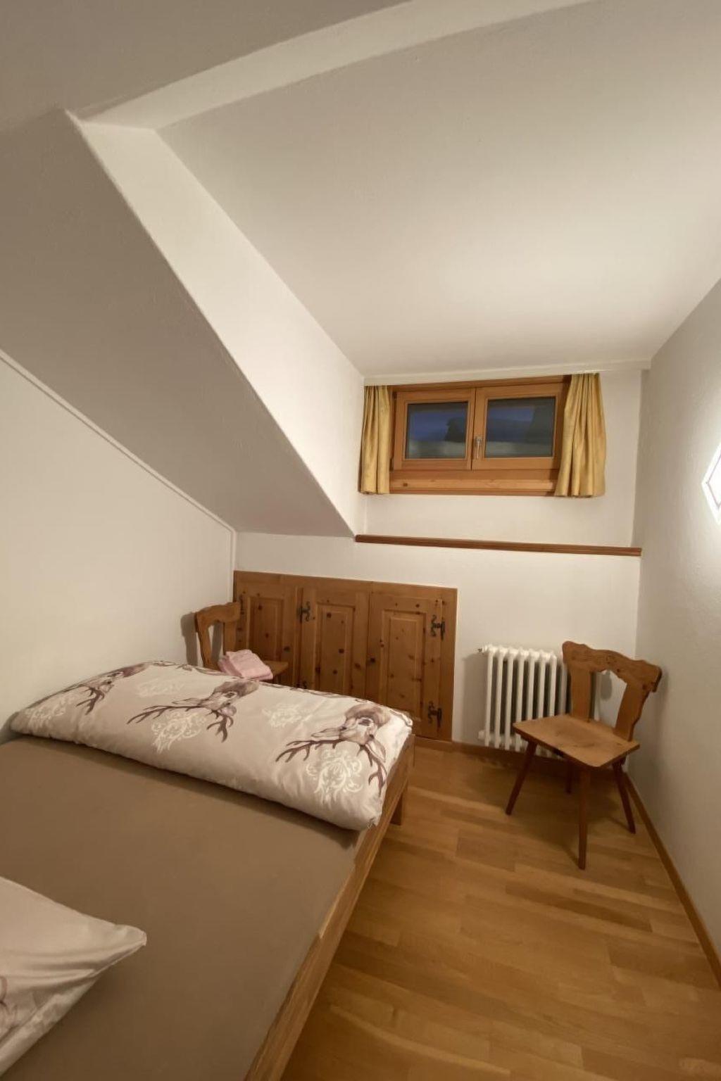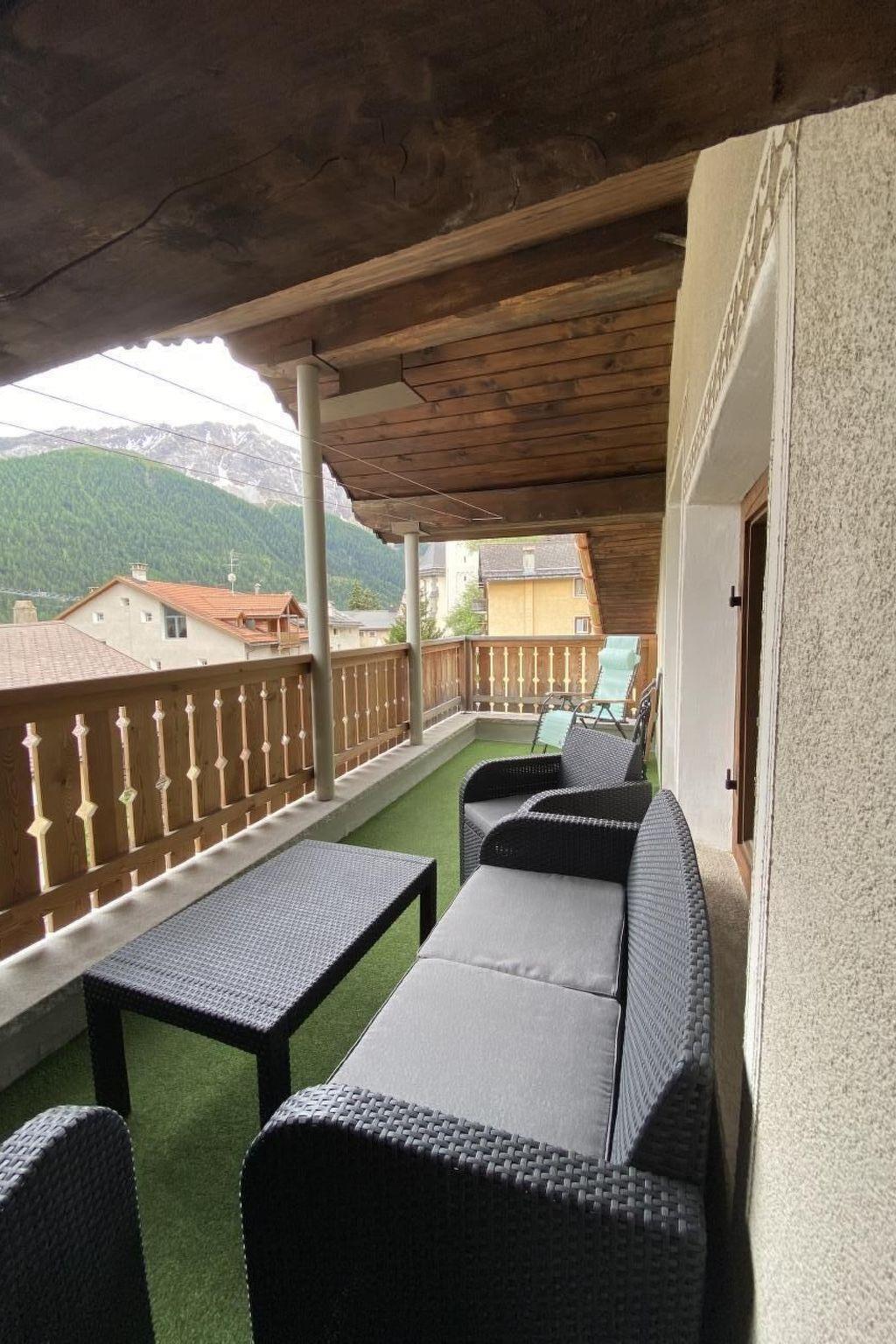Sonnige 4.5 Zimmerwohnung im 3. Stock, in schönem Engadinerhaus an zentraler Lage im Dorfzentrum, ruhig gelegen mit sonnigem Balkon. In der Wohnung hat es freien Internet WLAN-Zugang. Drei Schlafzimmer mit 5 Betten. Einfache Küche neu renoviert 2016. Backofen und Glaskeramikherd. Badzimmer mit Badewanne und WC.