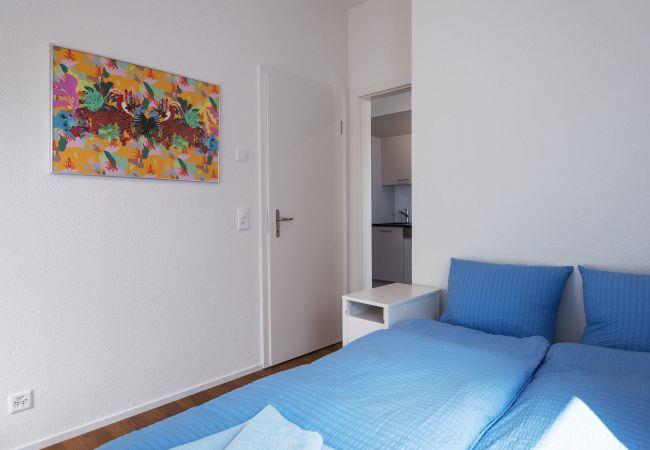 Preiswertes und komplett möbliertes Business Apartment in Zürich mit Balkon für zwei Personen.