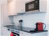 - Komplett eingerichtete Küche mit Herd, Mikrowellenofen, Kühlschrank und vielem mehr