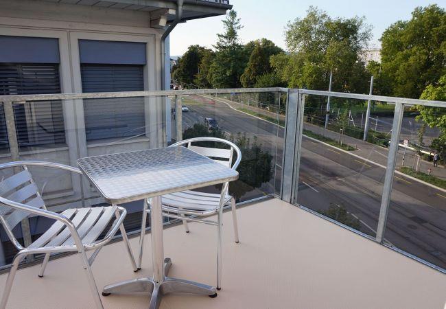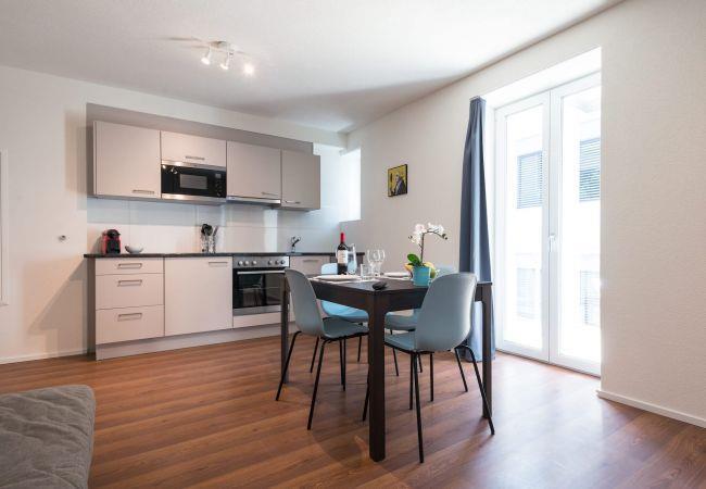 Stadtnahes, helles und möbliertes Apartment mit komplett eingerichteter Küche, Balkon und vielen Extras mehr für vier Personen.