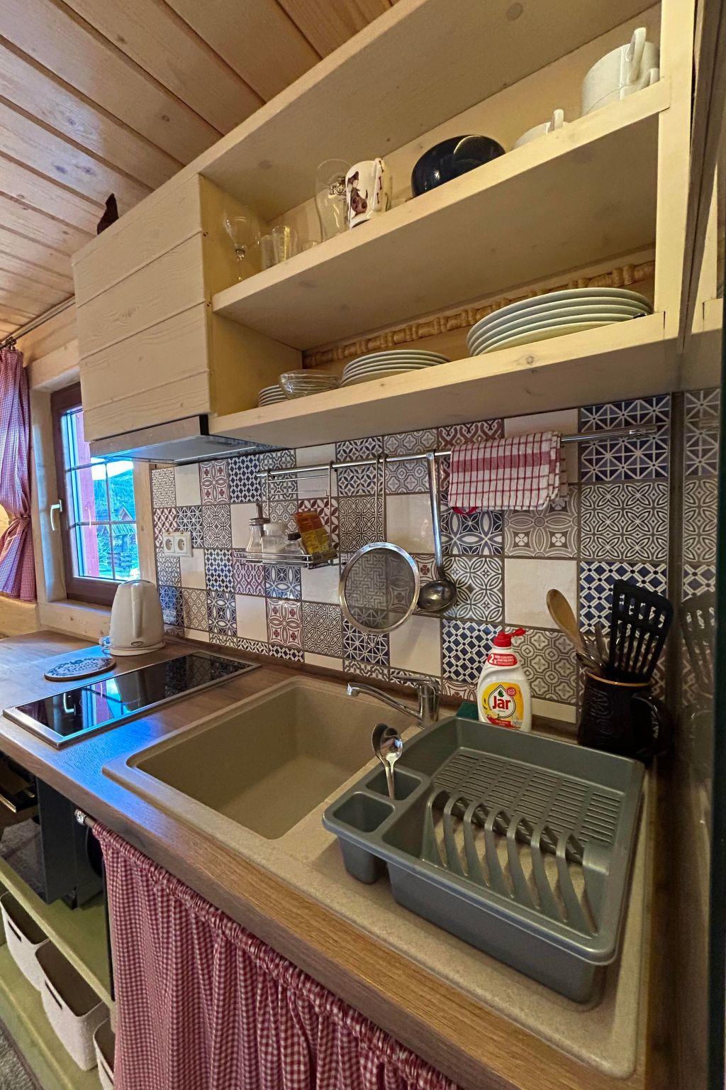 Im Inneren des Ferienhauses erwartet Sie eine angenehme und praktische Ausstattung, die Ihren Aufenthalt komfortabel gestalten wird. Die Fußbodenheizung sorgt an kühleren Tagen für wohlige Wärme in allen Räumen. Für selbstgemachte Mahlzeiten stehen Ihnen eine Filter-Kaffeemaschine, ein Wasserkocher und ein Minibackofen zur Verfügung. So können Sie sich nach einem aufregenden Tag in den Bergen ein gemütliches Essen bereiten.