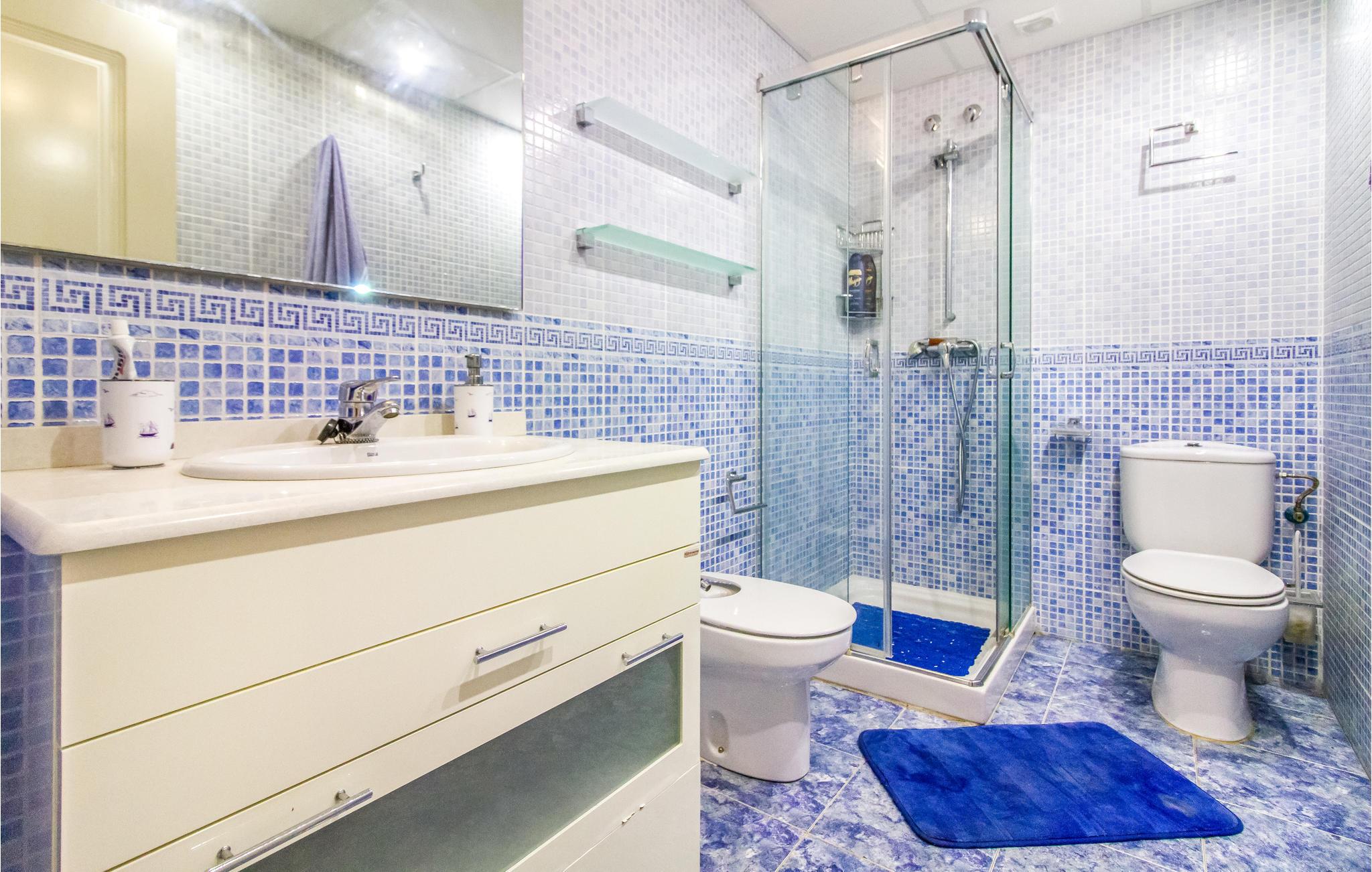 - WC mit warmem und kaltem Wasser, Dusche und Badewanne