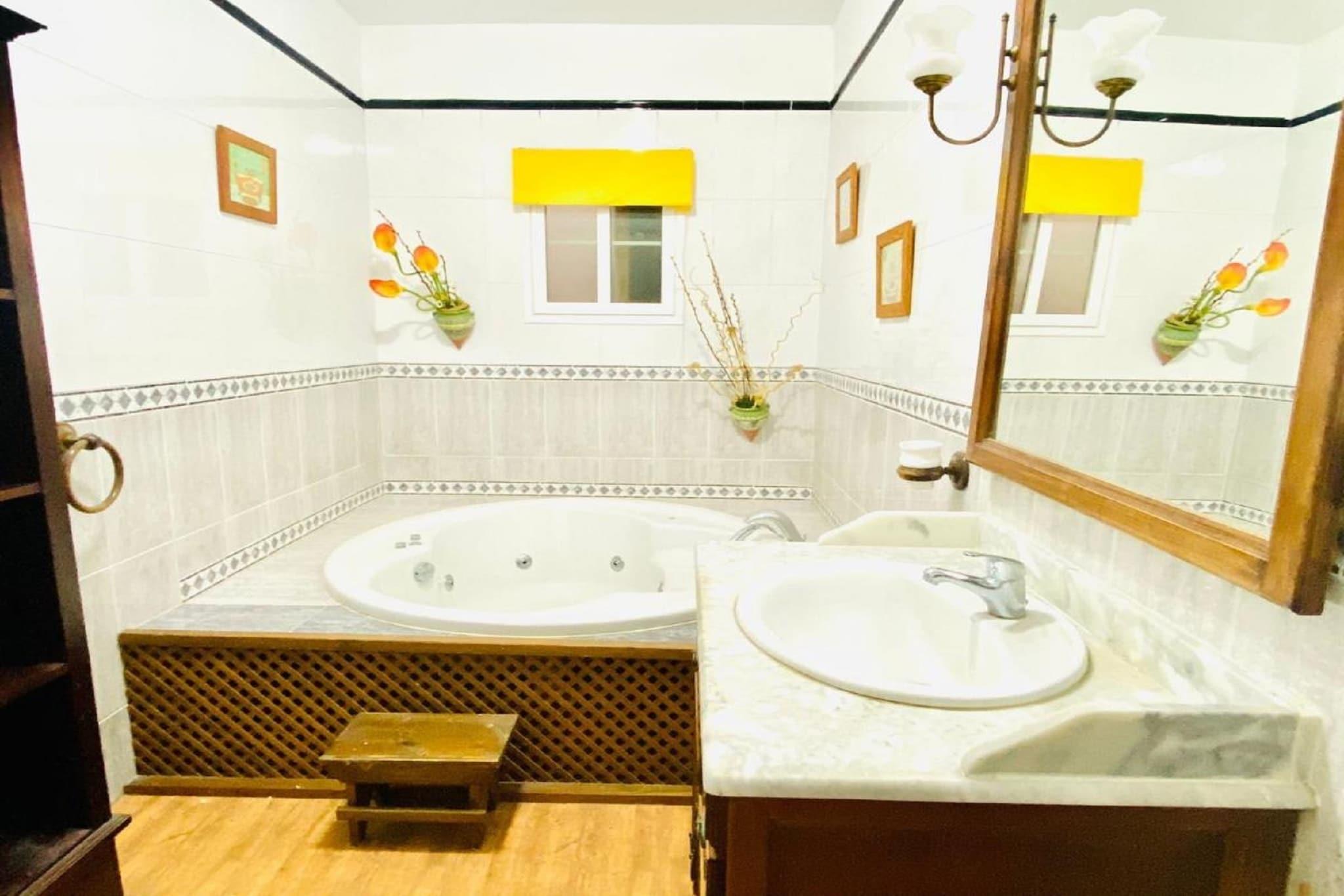 Parterre: (Küche(Kochplatte, Wasserkocher, Toaster, Kochherd, Dunstabzugshaube, Kaffeemaschine, Backofen, Mikrowelle, Kühl-/Gefrierkombination, Waschmaschine, Hochstuhl), Wohn/Esszimmer(TV, Kaminofen, Sitzecke), Schlafzimmer(Doppelbett(135 x 190 cm)), Schlafzimmer(Einzelbett(90 x 190 cm), Einzelbett(90 x 190 cm)), Badezimmer(Dusche, Waschbecken, Toilette), Badezimmer(Whirlwanne, Waschbecken, Toilette)) Balkon oder Terrasse, Grill, Parkplatz