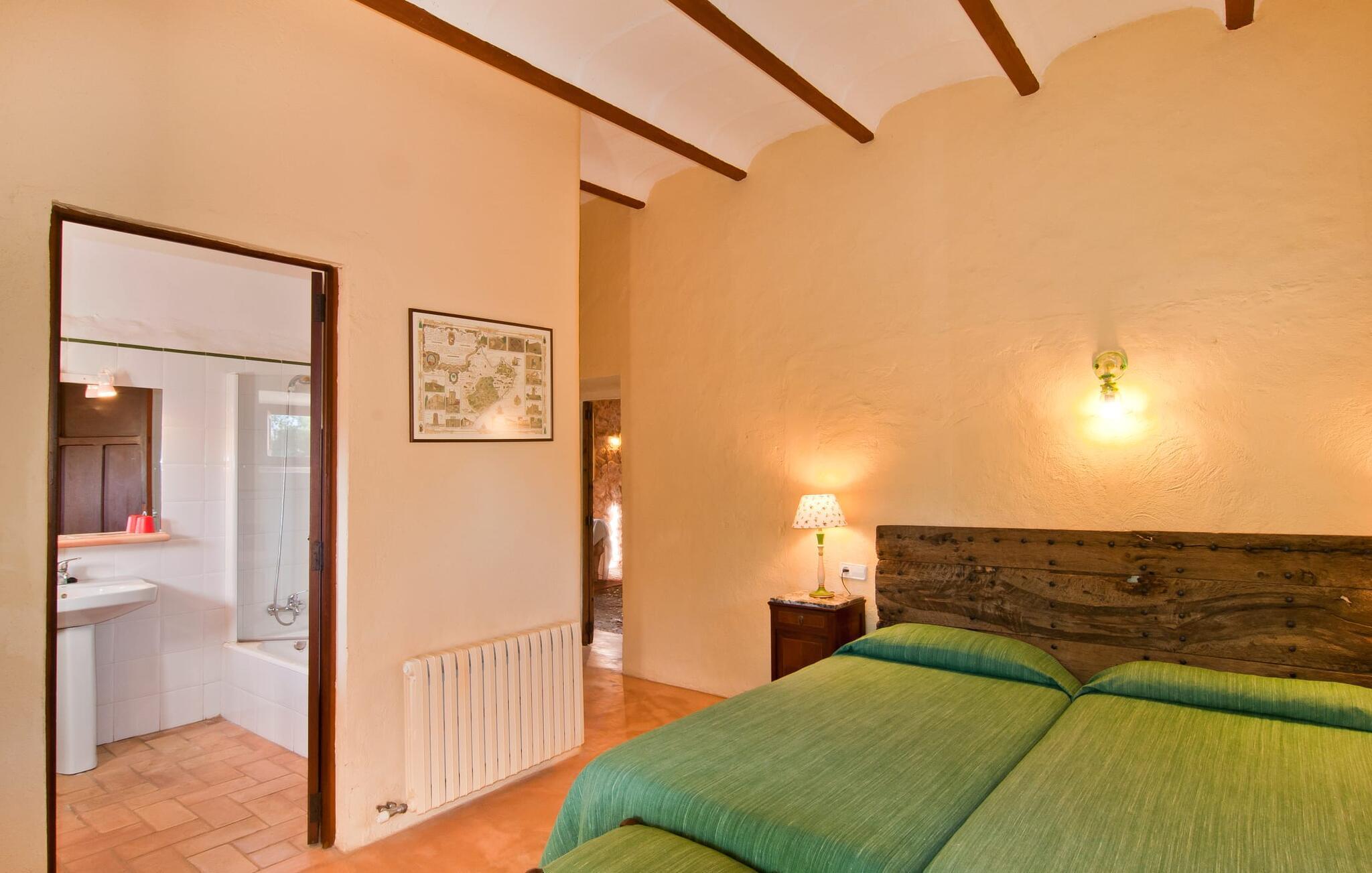 Vielleicht ist es diese Wohnung mit ihrer einzigartigen Geschichte. „Es Moli“, die „Getreidemühle“, ist im heutigen Wohnzimmer vollständig erhalten und dient als einzigartiger Tisch. Früher lief hier ein Esel oder ein Maultier im Kreis und drehte die Mühlsteine. In den Schlafzimmern wurde das Getreide gelagert. Beide Doppelzimmer verfügen über ein eigenes Badezimmer mit Duschwanne. Das gemütliche Wohnzimmer ist mit einem Sofa, einem Fernseher und einem rustikalen Kamin ausgestattet, der bei Bedarf für eine besondere Atmosphäre und Wärme sorgt. An den Tagen, an denen Sie den ganzen Tag auf dem Anwesen bleiben möchten, können Sie in der Küchenzeile mit Kühlschrank, zwei Cerankochfeldern, Mikrowelle und Kaffeemaschine Snacks, Salate und kleine Mahlzeiten zubereiten. Neben Tisch, Stühlen und Sonnenschirm verfügt die Terrasse über eine kleine Tür, sodass Sie absolute Privatsphäre haben. Gleichzeitig haben Sie den Pool und Ihre Kinder, die darin planschen, im Blick. Gönnen Sie sich zwischendurch eine Verschnaufpause mit einem guten Buch. Und es gibt eine Reihe lohnenswerter Ziele: Stadtleben oder Meeresbrise? Von Ihrer Villa-Unterkunft aus können Sie bequem die verschiedenen Seiten der Insel erkunden. Gut 15 km entfernt warten die Strände auf Sonnenanbeter, Surfer und Familien. Das weitläufige Son Serra de Marina und der fast zwei Kilometer lange Sandstrand in Richtung Colònia de Sant Pere bieten genügend Platz, um mehr als nur ein Handtuch auszubreiten. Wenn Sie die Blautöne von oben genießen möchten, fahren Sie nach Betlem und erklimmen die 5 km zur kleinen Ermita. Selbstverständlich sind auch anspruchsvollere Routen für Wanderschuhe und Mountainbikes möglich. Die Ma-3322, die je nach Windrichtung teilweise hörbar ist, führt Sie in die Stadt Manacor für einen spontanen Ausflug in die historische Innenstadt oder zum Einkaufen auf dem Vitaminmarkt. Wenn Sie die Kathedrale in Palma besichtigen möchten, lassen Sie Ihr Auto einfach am Bahnhof stehen und nehmen Sie den Bus oder die Bahn. Ferienhaus im Grünen mit viel Natur für die Villengäste. Fühlen Sie sich wie zu Hause auf dem zwischen Schafweiden und Weinreben gelegenen Agroturismo-Anwesen „Son Sureda“, das über elf Selbstversorger-Apartments und Studios, einen großen U-förmigen Innenhof und mehrere Pools verfügt. Manacor, eine der Metropolen der Insel, ist nur 9 km entfernt. Es eignet sich ideal zum Einkaufen auf dem täglichen Obst- und Gemüsemarkt, für Ausflüge und ein entspanntes Abendessen in einem Restaurant. Und an der Badia d’Alcúdia, in Richtung Son Serra de Marina und Colònia de Sant Pere, findet man noch einige Strände, die noch nicht überfüllt sind.
