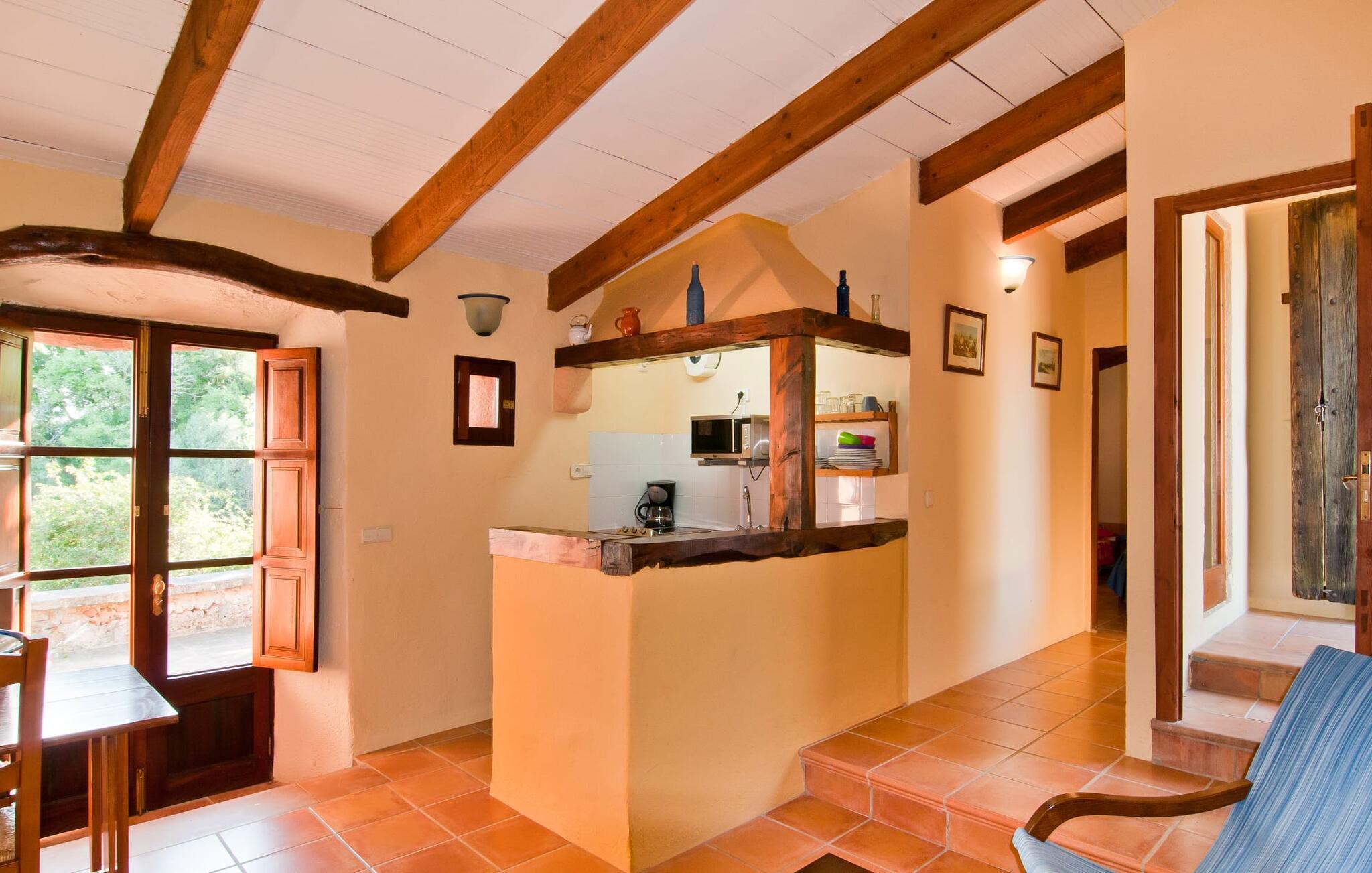 Vielleicht ist es „Es Porque“, der rustikale Bungalow, in dem Sie als Paar oder kleine Familie besonders viel Privatsphäre genießen können. Hier wohnte einst der Schweinehirt, direkt neben „Sa Porquera“, dem Geburtshaus der Ferkel. Ihr „Son Sureda“-Reich würde aus einem Doppelzimmer mit zwei 0,9 x 2 m großen Betten, einem modernen Duschbad und einem rustikalen Wohn-/Esszimmer mit typisch mallorquinischen Schaukelstühlen und einem kleinen Esstisch bestehen. An den Tagen, an denen Sie den ganzen Tag auf dem Anwesen bleiben möchten, können Sie in der Miniküche mit Kühlschrank, zwei Cerankochfeldern und einer Mikrowelle Snacks, Salate und kleine Mahlzeiten zubereiten. Die möblierte Terrasse, die von einer kleinen Natursteinmauer umgeben ist, ist direkt vom Wohnbereich aus zugänglich. Gönnen Sie sich zwischendurch eine Verschnaufpause mit einem guten Buch. Und es gibt eine Reihe lohnenswerter Ziele: Stadtleben oder Meeresbrise? Von Ihrer Villa-Unterkunft aus können Sie bequem die verschiedenen Seiten der Insel erkunden. Gut 15 km entfernt warten die Strände auf Sonnenanbeter, Surfer und Familien. Das weitläufige Son Serra de Marina und der fast zwei Kilometer lange Sandstrand in Richtung Colònia de Sant Pere bieten genügend Platz, um mehr als nur ein Handtuch auszubreiten. Wenn Sie die Blautöne von oben genießen möchten, fahren Sie nach Betlem und erklimmen die 5 km zur kleinen Ermita. Selbstverständlich sind auch anspruchsvollere Routen für Wanderschuhe und Mountainbikes möglich. Die Ma-3322, die je nach Windrichtung teilweise hörbar ist, führt Sie in die Stadt Manacor für einen spontanen Ausflug in die historische Innenstadt oder zum Einkaufen auf dem Vitaminmarkt. Wenn Sie die Kathedrale in Palma besichtigen möchten, lassen Sie Ihr Auto einfach am Bahnhof stehen und nehmen Sie den Bus oder die Bahn. Ferienhaus im Grünen mit viel Natur für die Villengäste. Fühlen Sie sich wie zu Hause auf dem zwischen Schafweiden und Weinreben gelegenen Agroturismo-Anwesen „Son Sureda“, das über elf Selbstversorger-Apartments und Studios, einen großen U-förmigen Innenhof und mehrere Pools verfügt. Manacor, eine der Metropolen der Insel, ist nur 9 km entfernt. Es eignet sich ideal zum Einkaufen auf dem täglichen Obst- und Gemüsemarkt, für Ausflüge und ein entspanntes Abendessen in einem Restaurant. Und an der Badia d’Alcúdia, in Richtung Son Serra de Marina und Colònia de Sant Pere, findet man noch einige Strände, die noch nicht überfüllt sind.