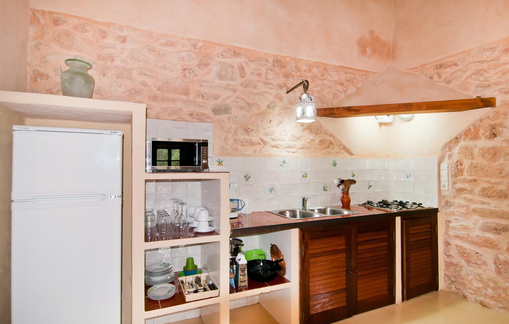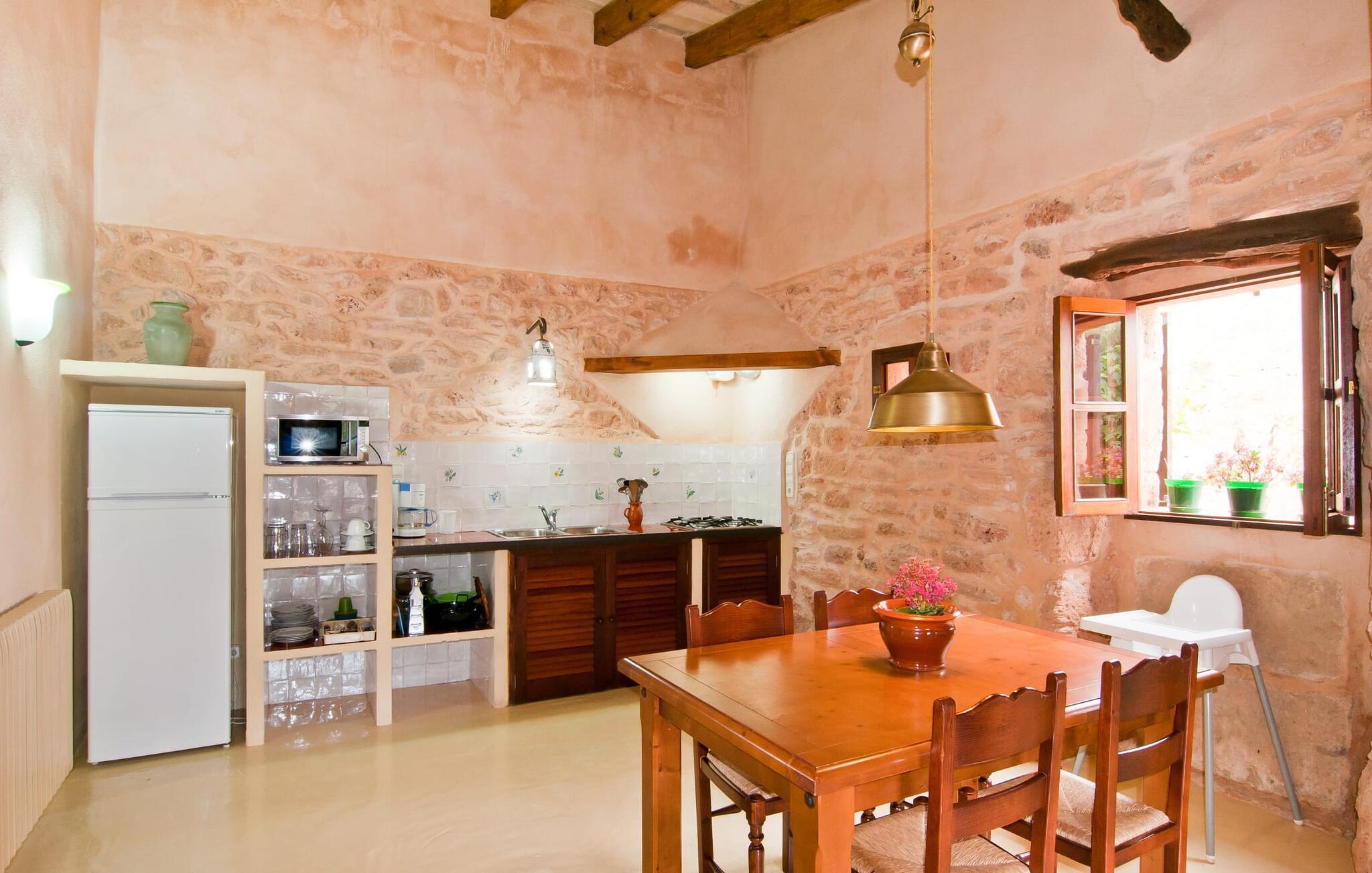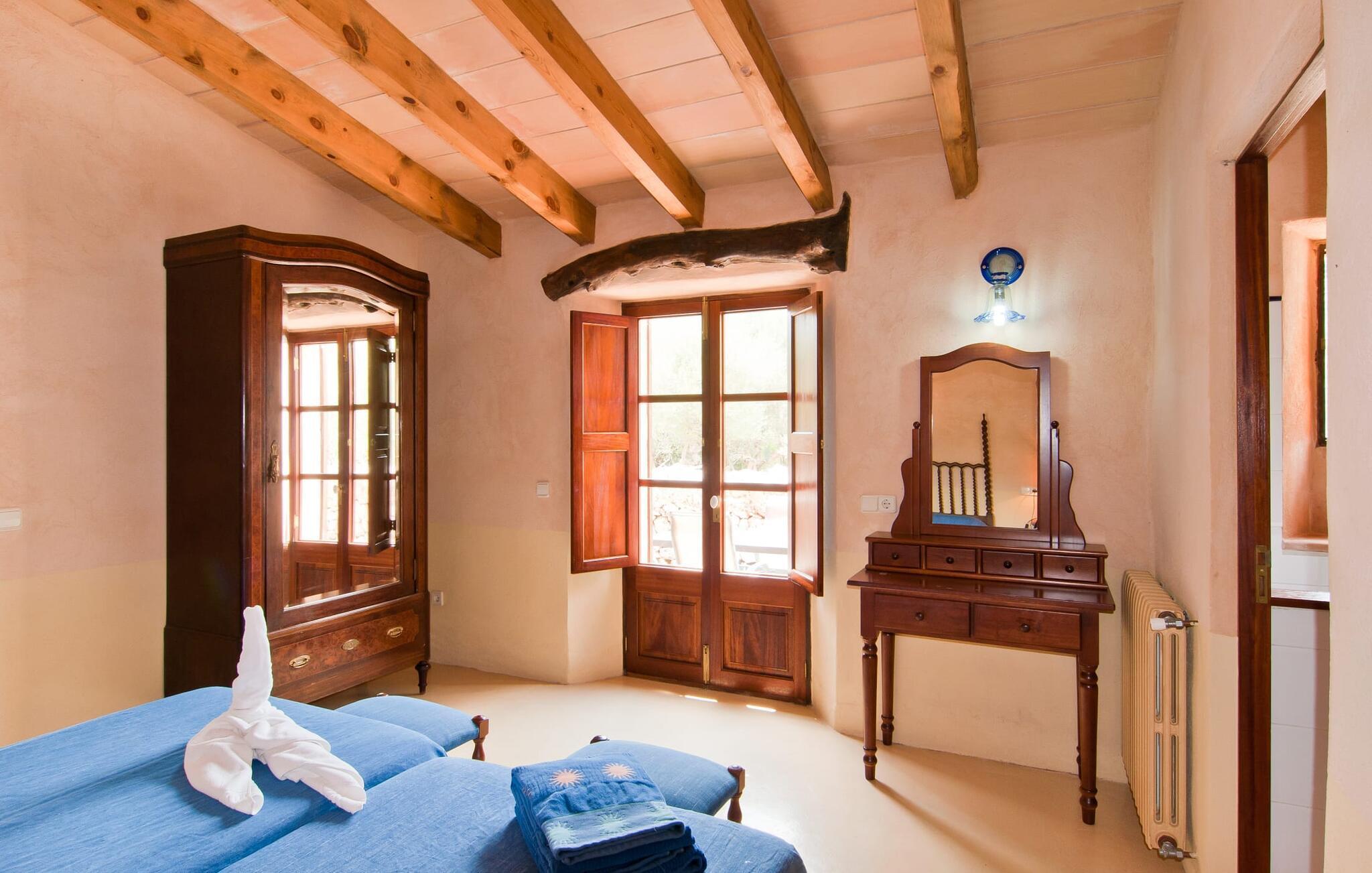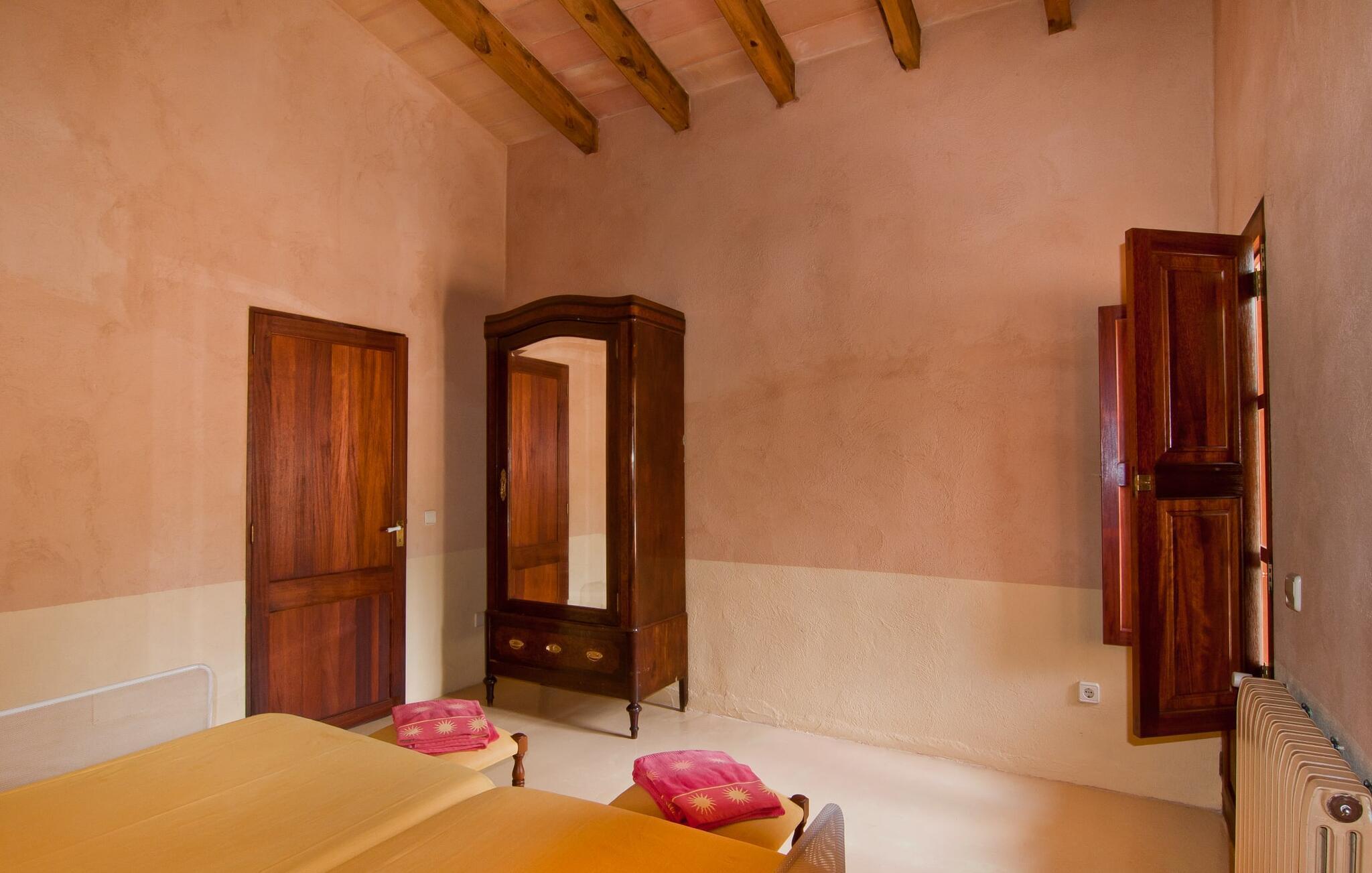 Vielleicht ist es diese Wohnung mit ihrer einzigartigen Geschichte. In der Anfangszeit war dieses Haus der Stall der Hengste. Man kreuzte einen männlichen Esel mit einer Stute, wodurch ein Maultier entstand, ein starkes Tier, das schwere Lasten tragen und stundenlang arbeiten konnte. Jedes der Schlafzimmer in dieser Wohneinheit verfügt über ein eigenes Badezimmer mit Dusche, Doppelwaschbecken und Toilette. Das gemütliche Wohnzimmer ist mit einem Sofa, mallorquinischen Schaukelstühlen, einem Fernseher und einem Kamin ausgestattet, der bei Bedarf für eine besondere Atmosphäre und Wärme sorgt. An den Tagen, an denen Sie den ganzen Tag auf dem Anwesen bleiben möchten, können Sie in der Küchenzeile mit Kühlschrank, zwei Cerankochfeldern, Mikrowelle und Kaffeemaschine Snacks, Salate und kleine Mahlzeiten zubereiten. Die Terrasse ist mit einem Tisch, Stühlen, Liegen und einem Sonnenschirm ausgestattet. Gönnen Sie sich zwischendurch eine Verschnaufpause mit einem guten Buch. Und es gibt eine Reihe lohnenswerter Ziele: Stadtleben oder Meeresbrise? Von Ihrer Villa-Unterkunft aus können Sie bequem die verschiedenen Seiten der Insel erkunden. Gut 15 km entfernt warten die Strände auf Sonnenanbeter, Surfer und Familien. Das weitläufige Son Serra de Marina und der fast zwei Kilometer lange Sandstrand in Richtung Colònia de Sant Pere bieten genügend Platz, um mehr als nur ein Handtuch auszubreiten. Wenn Sie die Blautöne von oben genießen möchten, fahren Sie nach Betlem und erklimmen die 5 km zur kleinen Ermita. Selbstverständlich sind auch anspruchsvollere Routen für Wanderschuhe und Mountainbikes möglich. Die Ma-3322, die je nach Windrichtung teilweise hörbar ist, führt Sie in die Stadt Manacor für einen spontanen Ausflug in die historische Innenstadt oder zum Einkaufen auf dem Vitaminmarkt. Wenn Sie die Kathedrale in Palma besichtigen möchten, lassen Sie Ihr Auto einfach am Bahnhof stehen und nehmen Sie den Bus oder die Bahn. Ferienhaus im Grünen mit viel Natur für die Villengäste. Fühlen Sie sich wie zu Hause auf dem zwischen Schafweiden und Weinreben gelegenen Agroturismo-Anwesen „Son Sureda“, das über elf Selbstversorger-Apartments und Studios, einen großen U-förmigen Innenhof und mehrere Pools verfügt. Manacor, eine der Metropolen der Insel, ist nur 9 km entfernt. Es eignet sich ideal zum Einkaufen auf dem täglichen Obst- und Gemüsemarkt, für Ausflüge und ein entspanntes Abendessen in einem Restaurant. Und an der Badia d’Alcúdia, in Richtung Son Serra de Marina und Colònia de Sant Pere, findet man noch einige Strände, die noch nicht überfüllt sind.