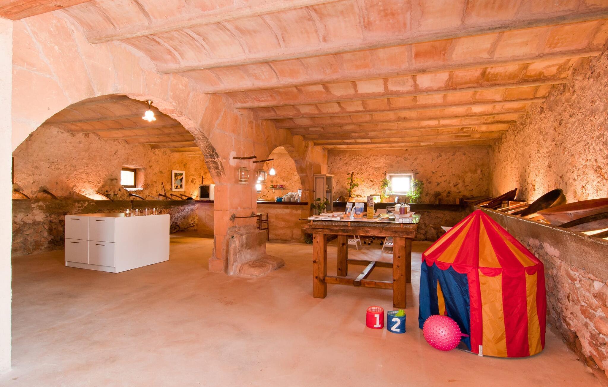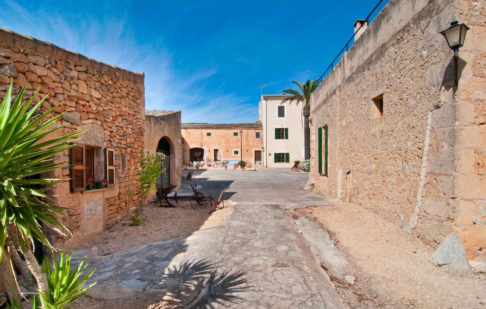Das beeindruckende Anwesen „Son Sureda“ mit seinen 1.500.000 m² hat sich nach 500 Jahren Landwirtschaft, Weinbau und Viehzucht auf kleine und große Urlaubsgäste eingestellt. Die Namen der elf Ferienwohnungen, die rund um das Haupthaus, das Bürgermeisterhaus und die Nebengebäude mit einem oder zwei Doppelzimmern verteilt sind, weisen noch auf ihre frühere Nutzung hin. Auf Ihren Spaziergängen rund um die alten Mauern entdecken Sie viele alte Pferdewagen und interessante landwirtschaftliche Geräte. Auf Ihren eigenen kleinen Terrassen im Erdgeschoss oder mit Ausblick genießen Sie Ihre Privatsphäre und haben die Möglichkeit, andere Urlauber an den vielen Tischen und Stühlen oder beim Gemeinschaftsgrill im großen Innenhof kennenzulernen. Ihren Mallorca-Morgen können Sie im beeindruckenden Gewölbe (den ehemaligen Pferdeställen) oder draußen auf dem offenen Gelände mit einem üppigen, inseltypischen Frühstück beginnen, das Sie bestellen können. Zwei Pools mit Liegen und Außendusche, ein Planschbecken, ein Spielplatz mit Schaukel, Sandkasten, Klettergerüst, Fußballplatz sowie Hühnerställe sorgen sowohl für Erholung für Alleinreisende und Paare als auch für einen Urlaub auf dem Bauernhof Familien. Wir sind sicher, dass es eine Wohnung gibt, die genau zu Ihnen passt.